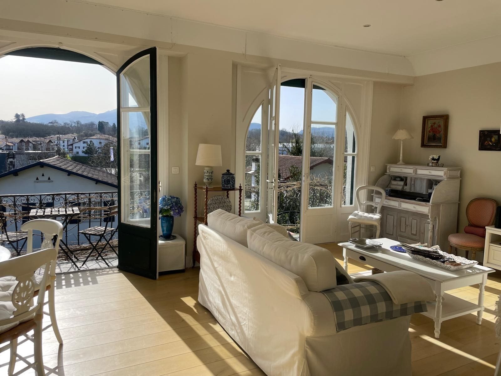 A la limite de Ciboure, bel appartement T4 de 95m2, situé au 1er et dernier étage d'une villa, copropriété de 2 lots. Accès privatif depuis le rez de chaussée, à l'étage entrée avec placard, séjour lumineux plein sud sur balcon, cuisine séparée, Wc, salle d'eau, trois chambres avec placards dont une avec sa salle d'eau Wc, sur balcon. Au rez de chaussée, zone de stationnement privatif, garage d'environ 28m2 aménagé en cuisine d'été et buanderie chaufferie, une agréable terrasse et un jardinet idéal pour recevoir et profiter des beaux jours. Un bien rare entre appartement et maison.