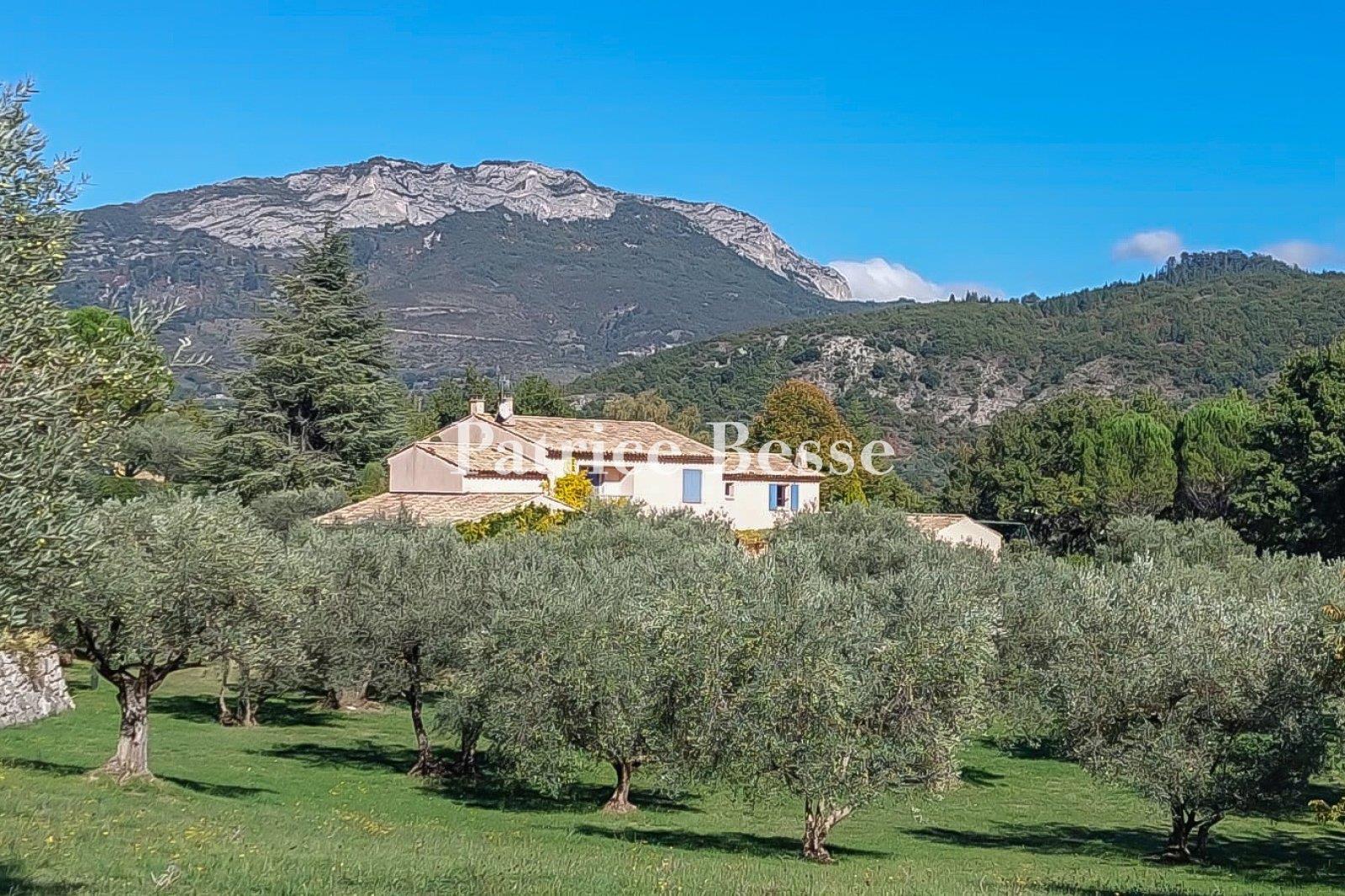 Aux portes de Sisteron, la vallée du Jabron à l'horizon, un mas provençal sur un terrain de 1,3 ha, son oliveraie et son bosquet. Le portail d'entrée, au nord du mas, est accessible par un chemin communal goudronné et peu emprunté, qui dessert quelques propriétés et oliveraies, sans vis-à-vis. Il conduit à une vaste cour qui distribue un garage et l'entrée principale de la maison familiale édifiée en 1994 et tournée vers le sud. La façade principale ouvre sur une vaste cuisine d'été, véritable pièce à vivre extérieure, où le sol est pavé de terre cuite des Launes. Sous une toiture traditionnelle aux tuiles plates apparentes, la charpente en chêne de la Durance et les chevrons en châtaignier composent un ensemble de belle facture. Depuis la cour, les espaces de vie extérieurs ne se dévoilent qu'en retrait, en empruntant un passage couvert ménagé entre le garage et le mas, ou par le jardin qui longe un bosquet de chênes. Un salon de jardin y prend place. Implantée au plus près des premiers oliviers, une piscine, exposée plein sud et constamment ensoleillée, prolonge des vues dégagées sur les oliveraies et les collines boisées environnantes.