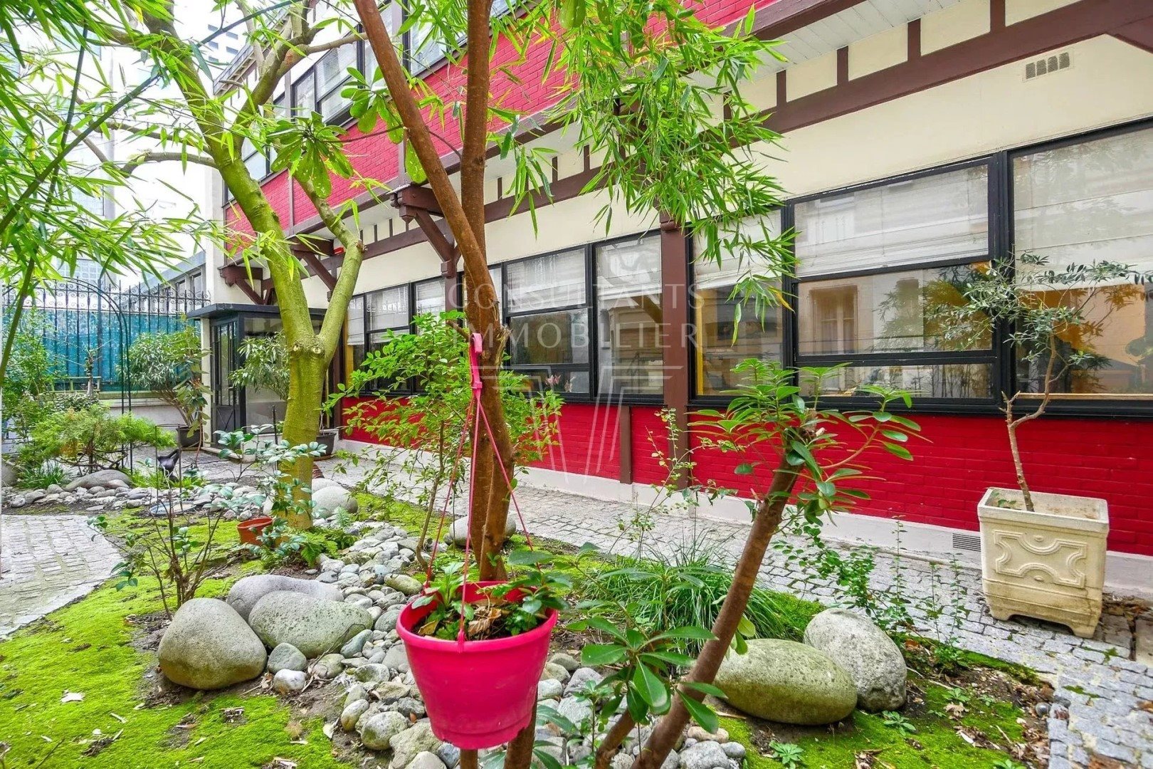 Levallois. Parc De La Planchette/Mairie. Maison Familiale Au Calme Avec EXTERIEUR. Idéalement située à proximité de la mairie et du parc de la Planchette, cette belle maison familiale au calme et exposée sud-est, est d'une superficie de 212,38 m² au sol - 162,02 m² loi Carrez -, elle bénéficie d'une jolie cour pavée et végétalisée, à l'abri des regards. Elle comprend : Au 1 €? niveau : une belle et vaste entrée pouvant être aménagée en bureau ou salle de jeux, une vaste pièce de réception de 53 m², ouverte sur la cour et une cuisine dînatoire. Au 2 € niveau : une suite parentale avec salle de bains, dressing et toilettes, une seconde chambre avec salle de douche. Au 3 € niveau : une dernière chambre avec sa salle de douche. Toilettes pour chaque chambre. Emplacement de stationnement "bateau d'entrée" devant la maison. Rare et particulièrement recherché à Levallois. Un bien unique, au calme, en plein cœur de la ville. GROUPE Consultants Immobilier