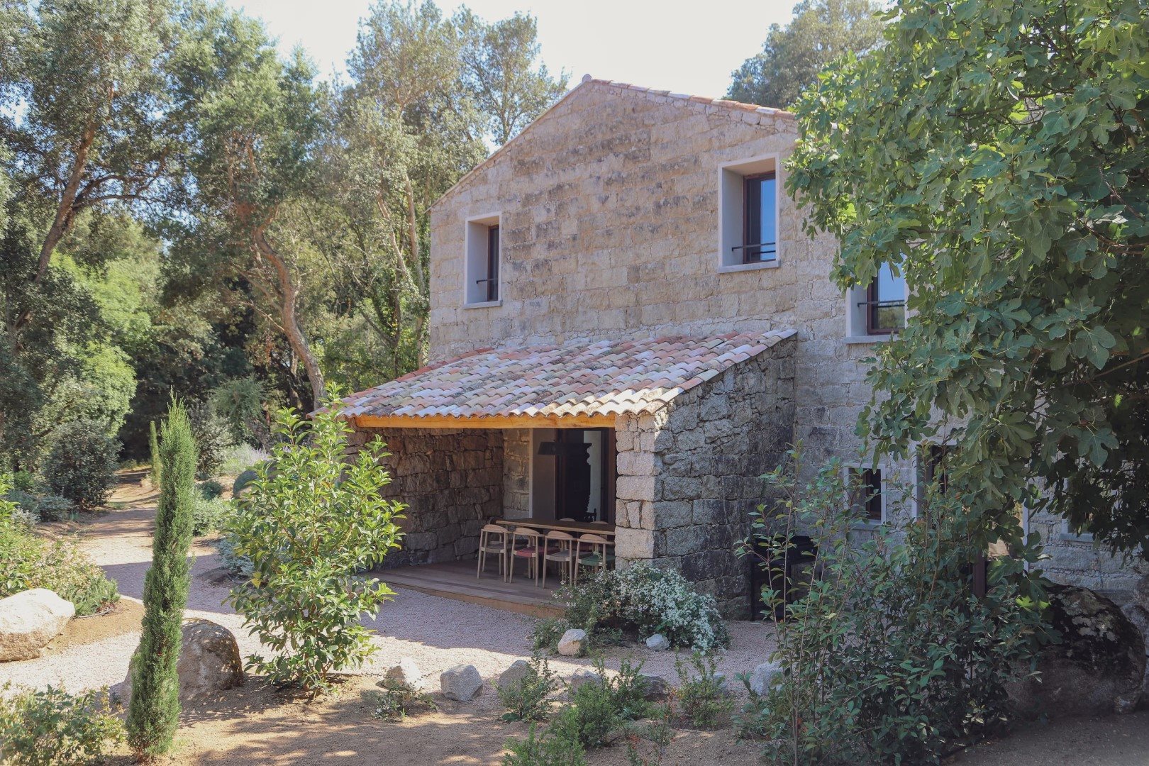 Référence Agence : Pvo-500 Disponibilités - Saison - 2026 : - Du 18 avril au 31 octobre. Villa à louer à Porto-Vecchio maison de caractère en pierres, rénovée, au cœur dun parc de 5 hectares Sur la route des villages de Muratello, Nota et Mela, cette villa de caractère entièrement rénovée en pierres offre une parenthèse rare : 200 m² habitables, une intimité totale au cœur de la nature, et la proximité immédiate de Porto-Vecchio. Un lieu authentique, élégant et chaleureux, pensé pour profiter pleinement de l'intérieur comme des grands espaces extérieurs. Au niveau principal, la villa sarticule autour dune vaste pièce de réception, lumineuse et accueillante, composée de : un salon Tv pour se détendre après la plage ou une journée dexcursions, une salle à manger pour partager de longs dîners, une cuisine entièrement équipée (non climatisée), pensée pour cuisiner comme à la maison, un cellier, pratique pour les courses et le rangement. Lensemble crée un vrai cœur de maison, à la fois confortable et authentique, avec le charme de la pierre rénovée. Au niveau supérieur : 2 chambres doubles (lits jumelables), une salle deau partagée, un Wc invités et une buanderie. Avec accès indépendant : 1 chambre double avec salle deau et Wc, 2 chambres doubles se partageant 1 salle deau, Wc séparés. Les extérieurs : vastes terrasses aménagées, salons extérieurs, salle à manger d'été avec barbecue, piscine chauffée 14 x 3 m sécurisée par alarme.