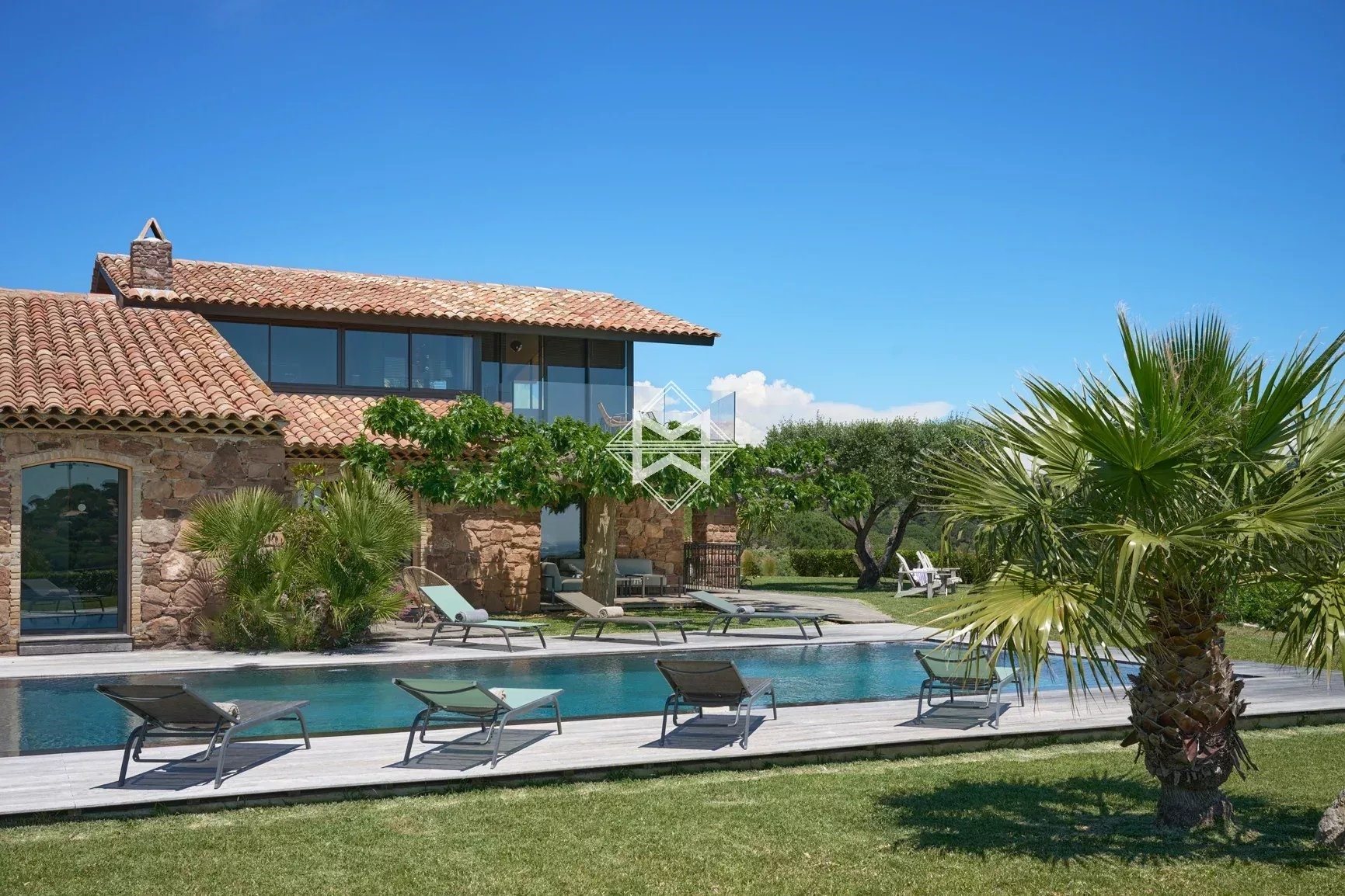 Au cœur d’un domaine fermé et en position dominante, propriété de caractère idéalement située à seulement 5 minutes de la renommée plage de La Nartelle à Sainte-Maxime, et profitant d’un panorama exceptionnel sur la mer et la nature environnante. Entièrement rénovée avec beaucoup de goût, cette villa de charme aux prestations haut de gamme, et baignée de lumière avec son exposition plein sud, propose de beaux volumes avec une surface d’environ 320 m2. Elle se compose notamment de grands espaces de vie avec salon, salle à manger et cuisine américaine et de 5 suites. La propriété profite d’un beau terrain plat d’environ 1400 m2 agrémenté d’une piscine, d’une cuisine d’été et d’un terrain de pétanque. Garage. Climatisation réversible. Domotique pour la sono. Beaucoup de cachet pour cette demeure atypique à la vue mer féérique.