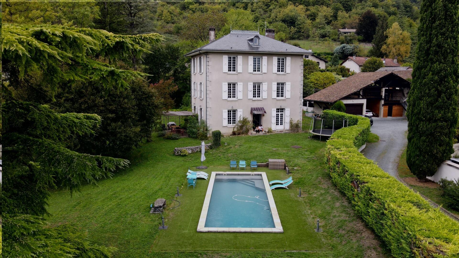 Crolles - Montfort, Maison de maître du XVIIIème, de 260 m², récemment rénovée, élevée de deux étages sur rez-de-chaussée avec sous-sol (grande cave, buanderie, chaufferie) sur un vaste terrain arboré de 4 925 m², équipée de nombreuses dépendances pour 180m² (garages, préau, abri voiture, remises, poulailler, salle de jeux sous toit) et logement annexe de 56 m², grande cour. DPE D/D.