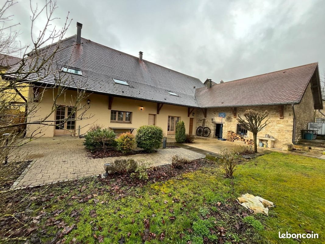 Corps de ferme entièrement rénové, 330 m2, 16,5 ares, atelier attenant --------------------------------------------------------------------------------------- Notre agence vous propose en exclusivité à Meroux-Moval, à 10 mn de Belfort et de l'Hopital Nord-Franche-Comté et à 5 mn de la gare Tgv, une superbe batisse du XIXème siècle ayant fait l'objet d'une rénovation intérieure et extérieure complète depuis 2006. Le bien est composé d'une partie habitation ainsi que d'une grange rénovée en 2021 en atelier type loft. La partie habitation est organisée de la façon suivante : - rez de chaussée de plain pied : hall d'entrée, vestibule, bureau, espace de vie de de plus de 70 m2 ( salon-salle à manger, coin bar, cuisine avec triple accès terrasse) avec plafond cathédrale sur mézzanine, cellier-buanderie, salle d'eau, Wc - étage : vaste mézzanine de plus de 33 m2 idéale pour un espace bureau ou salle de jeux, 4 chambres dont une avec dressing, salle vidéo, salle de bains, Wc Caractéristiques techniques : fenêtres bois double vitrage, chaudière fioul (2021) avec présence de 2 poêles à bois, dalle sur le premier niveau, toiture et charpente créees en 2007 ( tuiles terre cuite), maçonnerie complète reprise en 2006, Vmc. La grange rénovée en atelier en 2021 est aménagée de la manière suivante : - entrée de plain pied par verrière, espace accueil : plafond cathédrale sur double mézzanine, point d'eau, cellier, - à l'étage: 2 espaces ouverts, Wc et pièce à aménager en cuisine. Annexes: garage, cellier, chaufferie , grange attenante et 3ème niveau complet au dessus de l'habitation et de l'atelier. Extérieurs paysagers avec terrasse dallée à l'arrière de la maison, cour pavée devant l'atelier, vaste terrain arboré à l'arrière du bâtiment. La maison offre l'authenticité et le caractère de la ferme traditionnelle (colombages, volumes, plafond cathédrale) couplé à une rénovation complète, qualitative et confortable. Idéale pour une famille au regard du nombre de chambres , le bien propose encore des espaces d'aménagements supplémentaires (grenier ou grange extérieure). La modernité est aussi apportée par l'atelier type loft qui permet l'implantation d'une activité commerciale ou libérale, une mise en location type Airbnb voire d'autres perspectives. Bien unique et rare sur le marché. honoraires charge vendeur.