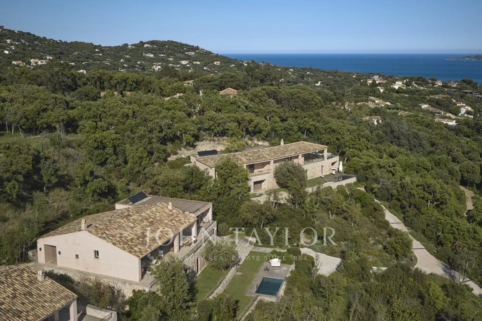 Situé sur les hauteurs de Grimaud, ce splendide domaine est l’endroit idéal pour des vacances en famille. Il se compose de quatre grandes maisons principales, de deux cabanons, d’une maison annexe et d’un vaste pool house entièrement équipé. Découvrez la possibilité de louer deux maisons au sein de ce prestigieux domaine. Parmi les options disponibles : La Maison La Ferme Rez-de-chaussée : Un vaste séjour, une cuisine entièrement équipée, un coin repas, une buanderie avec cave à vin et un cellier. Premier étage : Quatre chambres avec vue sur mer, chacune équipée d’un lit queen-size (trois peuvent être convertis en lits jumeaux), d’une salle de bains privative et de toilettes séparées. Annexe de La Ferme De plain-pied, cet espace comprend : un séjour avec télévision ouvrant sur une terrasse extérieure avec coin repas et une piscine de 6 mètres à fond mobile. Deux chambres avec vue sur mer, équipées chacune de deux lits queen-size (convertibles en lits jumeaux), une salle de bains avec douche et des toilettes adaptées aux personnes à mobilité réduite. La Maison Carbonnelle Rez-de-chaussée : Quatre chambres avec salle de douche privative, une buanderie et des toilettes séparées. Premier étage : Un salon avec coin repas, un second salon avec grande télévision, une cuisine, une buanderie avec cave à vin. Une suite parentale avec salle de bains privative (baignoire et douche), toilettes séparées, ainsi qu’un bureau spacieux avec terrasse privée et vue mer. Tous les lits mesurent 160 cm et sont convertibles en lits jumeaux. Le Cabanon Bleu & Le Cabanon Rose Ces charmants logements partagent plusieurs terrasses communes ainsi qu’une piscine de 6 mètres à fond mobile. Le Cabanon Bleu : Deux chambres, une salle de douche séparée et des toilettes indépendantes. Le Cabanon Rose : Une chambre avec salle de douche et toilettes privatives. Toutes les chambres sont équipées d’un lit de 160 cm convertible en lits jumeaux. Maison Terre Brune Rez-de-chaussée : Cinq chambres avec salle de bains privative, dont deux équipées de lits king-size, plusieurs toilettes privatives ou partagées, des toilettes invités et une buanderie. Premier étage : Un grand salon avec télévision, un séjour avec coin repas, une cuisine entièrement équipée et une buanderie. À ce niveau se trouve également la chambre principale avec salle de bains privative (baignoire et douche), toilettes séparées, un bureau spacieux avec lit d’appoint et télévision, ainsi qu’un accès à une terrasse privée avec vue sur mer. La villa dispose également d’une piscine de 6 mètres à fond mobile et de deux terrasses. Tous les lits peuvent être convertis en lits jumeaux. Maison Solsequia Rez-de-chaussée : Quatre chambres (lits 160 cm, convertibles en lits jumeaux), chacune avec salle de bains privative, dont une adaptée aux personnes à mobilité réduite, ainsi que plusieurs toilettes. Premier étage : Un vaste séjour avec télévision, un séjour avec coin repas et vue sur mer, une cuisine entièrement équipée, une buanderie et une élégante verrière intérieure. La suite parentale bénéficie de deux salles de bains (l’une avec baignoire, l’autre avec douche et Wc séparés), d’un bureau attenant et d’un accès à une terrasse privée avec vue mer. La villa dispose également d’une piscine de 6 mètres à fond mobile et de deux terrasses. Le Pool House Un espace exceptionnel de 150 m² dédié à la détente, composé : d’un grand séjour avec coin repas, d’un salon modulable, d’une cuisine et d’une buanderie, de vestiaires avec douches et WC. Profitez également : d’une piscine chauffée de 20 mètres, d’une terrasse sur le toit offrant une vue imprenable sur la mer, de plusieurs terrasses aménagées avec mobilier de jardin, plancha et four à bois, d’une salle de loisirs avec baby-foot, table de ping-pong et enceintes Bluetooth Sonos. Toutes les villas sont équipées de la climatisation et du Wi-Fi.