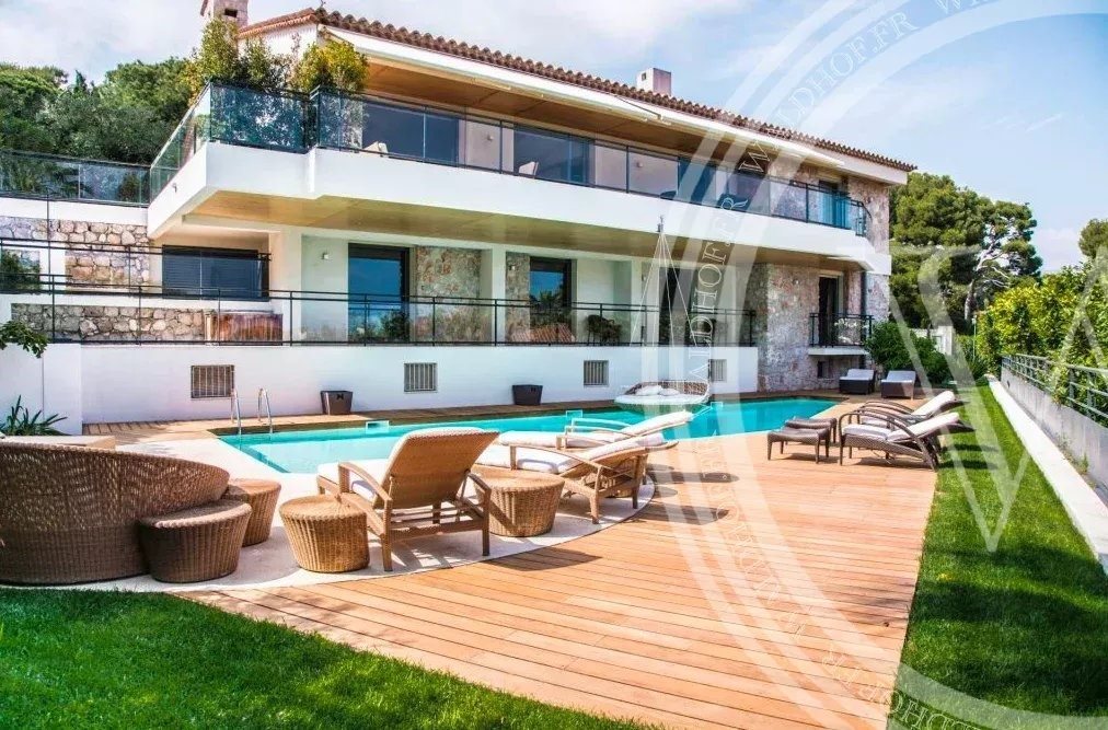 Située à seulement 24 minutes en voiture de Monaco, cette villa contemporaine de 500 m² habitables incarne l’art de vivre à la française dans l’une des adresses les plus prestigieuses de la Côte d’Azur. À deux pas du Grand-Hôtel du Cap-Ferrat, la propriété offre une vue mer spectaculaire, des volumes impressionnants et des finitions de très haut niveau. Décorée par un designer français, elle se déploie sur trois niveaux avec ascenseur et bénéficie d’une exposition sud-est idéale. Au rez-de-chaussée : vaste séjour lumineux, salle à manger, cuisine ouverte avec bar élégant, chambre de maître avec dressing et salle de bain majestueuse. Chaque pièce ouvre sur une grande terrasse ensoleillée. À l’étage inférieur : trois chambres avec dressings, salons privatifs et salles de bain spacieuses. Au dernier niveau : une chambre supplémentaire, espace bien-être avec salle de sport, sauna, salle de bain, buanderie, cave à vin, garage deux voitures. La villa est entièrement équipée : climatisation centralisée, système audio, rideaux motorisés, sécurité renforcée. Les extérieurs accueillent une piscine chauffée avec balançoire suspendue, le tout baigné de lumière naturelle. Une adresse rare, confidentielle et résolument exclusive.