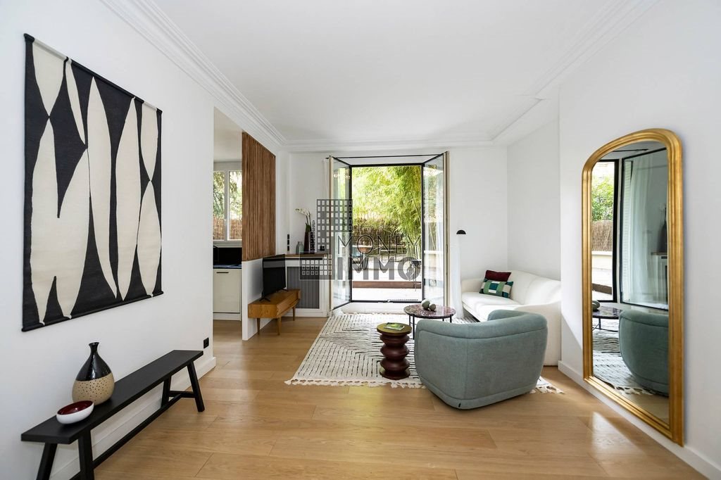 Comme Une Petite Maison - Cet appartement meublé idéalement situé entre l'Avenue Henri Martin, et le jardin du Ranelagh en rez-de-chaussée se compose d'une entrée, d'un salon avec sa cuisine américaine donnant sur une magnifique terrasse arborée bénéficiant d'une exposition plein sud. La partie nuit se situe au premier étage de l'appartement attenant à une sublime salle de bain.