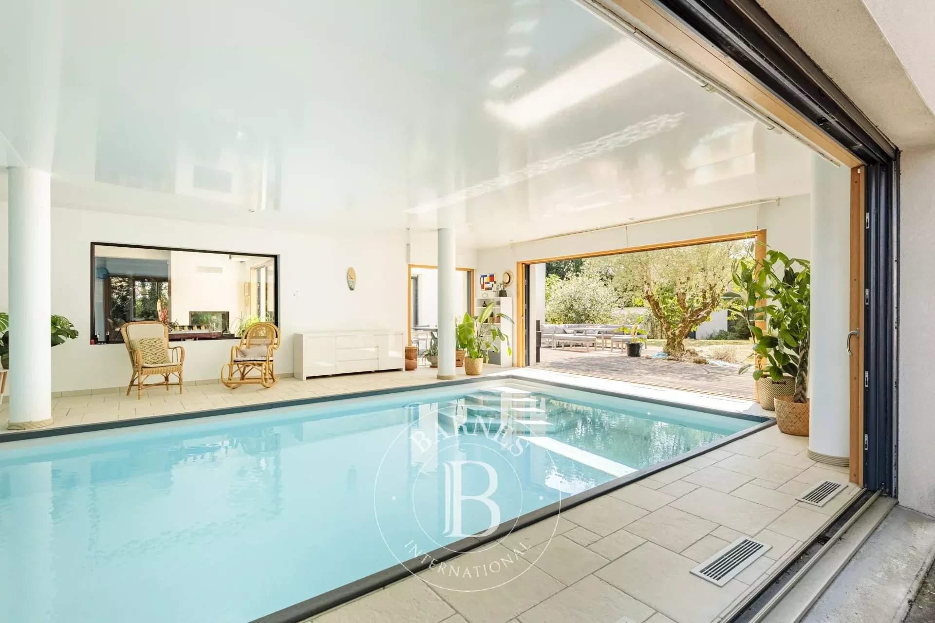 Barnes Nantes vous propose, en exclusivité, une très belle maison familiale de près de 375 m2 sur une parcelle avoisinant les 2000m2, idéalement située à Nantes, à l'abri des regards et à proximité des bords de Sèvre. Ce bien à l'approche atypique vous propose, de plain-pied, une entrée aménagée, une cuisine entièrement équipée ouverte sur un bel espace de vie, salon-séjour, une suite parentale avec sa salle de bains privative et son dressing, un salon détente et une buanderie. Le 1ier étage, quant à lui, distribue trois chambres avec leur accès privatif aux balcons donnant sur le jardin, deux mezzanines et une salle de douches. En deuxième lieu, vous trouverez deux studios indépendants, aménagés et équipés, propices à un projet locatif. Enfin et pour vous permettre de profiter, en toute saison, d'un espace aquatique baigné de lumière grâce à de larges baies vitrées, vous découvrirez une belle piscine chauffée et aménagée donnant accès aux espaces extérieurs. Un garage et des terrasses aménagées complètent ce bien d'exception. Ce qui ne peut que vous séduire : Une maison d'architecte, répondant aux attentes d'une famille, rendue lumineuse par ses innombrables ouvertures, alliant environnement préservé et proximité des commodités de la ville ? une opportunité à ne pas manquer. Honoraires à la charge du vendeur - Montant estimé des dépenses annuelles d'énergie pour un usage standard, établi à partir des prix de l'énergie de l'année 2023 : 3530€ ~ 4850€ - Les informations sur les risques auxquels ce bien est exposé sont disponibles sur le site Géorisques :
