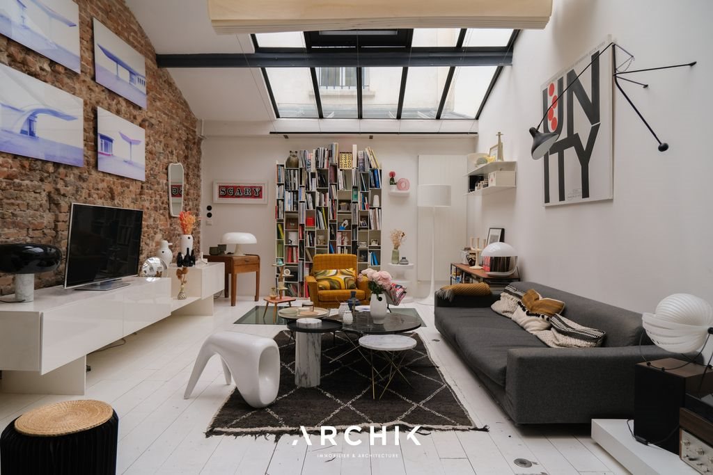 20Th century industrial architecture, this former furniture factory, hidden from view at the back of a paved courtyard typical of the artisanal past of the Charonne-Keller district, houses a characterful 160 m2 loft workshop reinvented as a living space, like an independent house, a stone's throw from Keller Street. Rehabilitated in 2005, this unique, vertically conceived space is a place where light circulates freely thanks to large skylights and a volumetric architecture. Behind a discreet facade, the space is fluidly organized, blending exposed brick, metal beams, skylights, and understated materials in an industrial style. The ground floor houses the entrance, leading to a first living space currently used as an office or guest room, ideal for working from home, a separate area, or an occasional bedroom. Beyond this, a master suite unfolds around a freestanding bathtub, with an adjoining dressing room and shower room, offering exceptional comfort and an almost hotel-like atmosphere. A steel staircase, a sculptural element of the space, leads to the first floor, the vibrant heart of the loft. Here, the main living area opens beneath an extra-large skylight: the living room, dining room, and open-plan kitchen with unobstructed views flow together in a single volume bathed in natural southern light. The high ceilings and perspectives create a feeling of spaciousness and constant openness. A bedroom completes this level. On the second floor which has recently been extended the home-like feel continues with two additional bedrooms, ideal for a family, guests, or a creative space, as well as a shower room. This loft offers a subtle balance between intimacy and openness, raw architecture and contemporary comfort, in a scenographic layout where each level has its own atmosphere, allowing for multiple uses and true modularity on a daily basis. A storage unit in the courtyard is available as an additional option. A loft that feels like a house, with an industrial aesthetic.