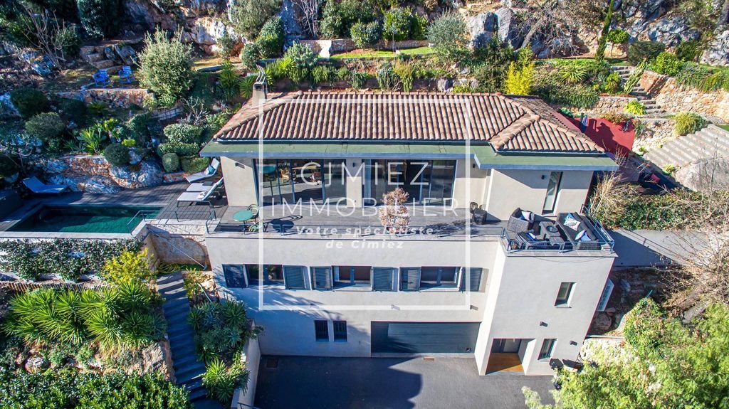 Proche Nice - Quartier Gairaut Située Route de l’Aire Saint-Michel à Falicon. A seulement 15 min du centre ville de Nice. Maison individuelle édifiée sur un terrain en position dominante offrant un cadre de vie rare, au calme absolu, avec une vue dégagée jusqu’à la mer. Son architecture contemporaine, ses volumes généreux et ses prestations actuelles en font une propriété clé en main, sans aucun travaux à prévoir. La maison s'élève sur trois niveaux dont 2 niveaux principaux d'environ 192 m² habitables, le tout desservi par un ascenseur. Les expositions Sud et Est assurent une luminosité constante tout au long de la journée. Le niveau principal accueille un vaste séjour avec cuisine ouverte, donnant accès à une grande terrasse d’angle, idéale pour les moments de détente et de réception. La piscine carrelée et chauffée se situe sur le même niveau, permettant une parfaite continuité entre intérieur et extérieur, le tout avec une vue dominante jusqu’à la mer. Côté cuisine se trouve un second espace de vie extérieur avec son salon de jardin et son coin barbecue. L’Espace nuit au niveau inférieur comprend trois chambres avec dressing, un dégagement, une salle de bains (baignoire + douche), une salle de douche, et un Wc indépendant. En rez-de-chaussée, la propriété dispose d’un très grand garage avec porte électrique, d’une entrée avec dressing ainsi que d’un studio indépendant comprenant un véritable coin nuit, une salle de douche avec Wc, offrant une solution idéale pour recevoir ou pour un usage locatif. Le confort est assuré par un chauffage au sol, une climatisation réversible et une cheminée. L’environnement est résidentiel, calme et recherché, avec un accès aisé. Honoraires à la charge du vendeur Les informations sur les risques auxquels ce bien est exposé sont disponibles sur le site Géorisques :