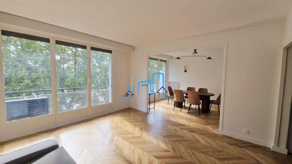 Cos Immobilier Vous Propose : Paris Xvi - Avenue de Versailles Quaie Bleriot - Avenue de Versaille, bel appartement lumineux et en parfait état, situé au quatrième étage d'un immeuble '1970' avec ascenseur, d'une surface de 96 m², loué Vide ou MEUBLE. Il se compose d'une grande entrée avec rangement, d'un double séjour avec parquet en pointe de hongrie et climatisation donnant sur une terrasse avec vue sur la seine, d'une cuisine aménagée et équipée, de deux chambres chacune équipés d'une climatisation, d'une salle d'eau moderne ainsi que de toilette indépendante. Une grande cave complète ce bien ainsi qu'une place de parking. Bien entièrement rénové avec des matériaux de qualités.