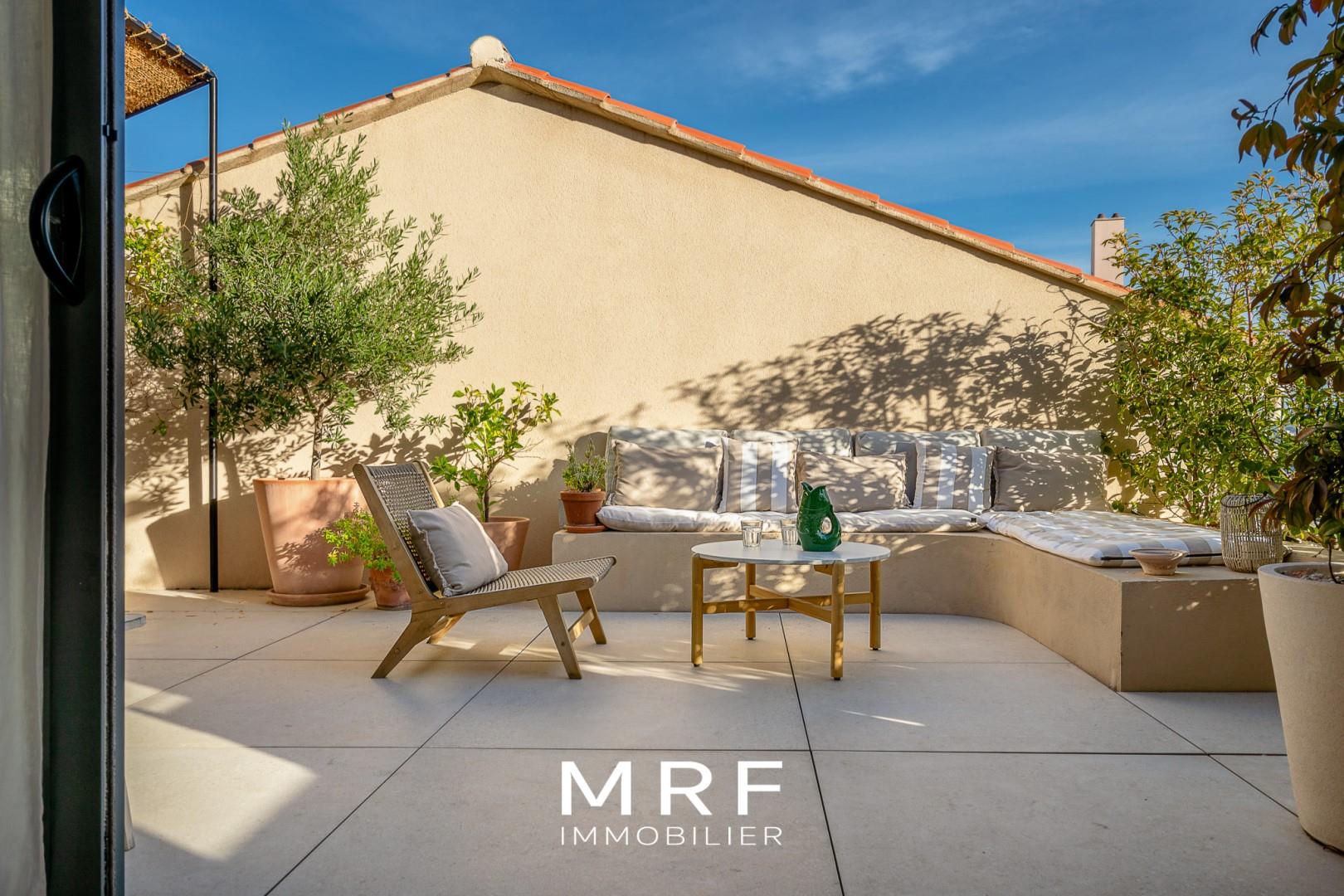 Situé au premier et dernier étage d’une petite copropriété des années 1900, cet appartement en duplex de 117 m2 avec extérieur trouve sa place dans le recherché quartier du Roucas Blanc. Traversant Est-Ouest, le bien a été entièrement repensé par ses propriétaires actuels. Inversé, l’entrée au banc maçonné ouvre sur l’espace nuit composé de 3 chambres. Ici, le maximum d’éléments d’origine ont été conservés : tomettes et carreaux de ciments dialoguent avec les portes et les moulures. La suite parentale d’environ 35 m2, est traitée telle une suite d’hô la salle de bain avec baignoire et douche à l’italienne se parent d’un béton ciré blanc de blanc, d’un meuble arrondi sur mesure couleur terracotta avec évier intégré et d’un wc séparé. Elle se prolonge d’un côté par un large dressing tout hauteur et de l’autre, derrière une double porte vitrée au fronton années 30, une grande chambre aux délicates liseuses de chez Enamoura. Plus loin, les deux chambres enfants profitent de dressings et se partagent une salle d’eau twistée d’une mosaïque verte de Bali et d’une enfilade en bois. Une buanderie et un wc séparé avec lave mains complètent le niveau. Passé l’escalier aérien en Sika Top blanc rythmé d’une ferronnerie au ton farrow and ball, la pièce de vie offre une double hauteur élégante à la lumière zénithale du vélux orienté Sud. Banquette maçonnée, cheminée arrondie, salle à manger et cuisine Nolte aux façades noires, trouvent leur place à cet étage. Côté matériaux : parquet point de Hongrie se mêle au béton poncé et au zellige de la crédence de la cuisine. Pratique, une arrière-cuisine complète le tout. Telle une prolongation de l’espace, les baies à galandage deux ventaux ouvrent sur la terrasse de 34 m2 où la Bonne Mère pointe le bout de son nez. Avec son coin salon, déjeuner et cuisine d’été lovée sous une pergola protégée d’une ombrière Scourtinerie de Nyons, cet extérieur offre un lieu de vie supplémentaire. Ses dalles blanches du sol répondent à l’enduit crème des murs où la végétation verdoyante prend délicatement sa place. Un garage fermé peut venir compléter le tout. Un appartement en duplex inversé et familial relevant le défi de la cohabitation entre l’ancien et le récent. L’architecte JoBe Architecture voit le jour en 2014 sous l’impulsion de Loïc Jourdan et Gabriel Benarrous. Marseillais, ils ont fait leurs armes au sein d’ateliers de renom de la cité. Leur démarche se veut responsable et adaptée, souvent inscrite dans des lieux existants chargés de passé et en quête d’avenir plus en phase avec les enjeux de notre temps. Leurs projets sont élaborés avec une attention prononcée aux détails et aux finitions, tout en prônant le besoin de responsabilité et de durabilité. Le propriétaire met en avant La rénovation globale Les volumes La vie de quartier Informations complémentaires : Dpe : B/A— Erp : Les informations sur les risques auxquels ce bien est exposé sont disponibles sur le site Géorisques — Copropriété : Oui — Lot : 3 — Procédure en cours : Non — Typologie : Transaction — Mandant : Mrf Immobilier, 89 chemin du Roucas Blanc 13007 Marseille, Sarl au capital de 5 000 €, immatriculée au Registre du Commerce et des Sociétés de Marseille sous le numéro B 947 893 756, No Tva intracommunautaire Fr, carte professionnelle no Cpi 1310 2[Coordonnées masquées]25 délivrée par la Préfecture des Bouches-du-Rhône, numéro d’adhérent Fnaim 921020. La caisse de garantie financière de la Sarl est Galian 89, rue de la Boetie 75008 Paris pour un montant de 120 000€.