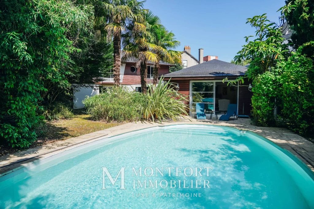 New - Montfort Immobilier Luxe & Patrimoine Nantes - La Baule - PORNIC From the moment you enter, this 1998 architect-designed house captivates with its spaciousness and luminosity. The main living space, over 100 m², boasts cathedral ceilings and large bay windows opening onto the garden. It comprises a winter lounge with cross-cutting fireplace, a dining room, a vast living room and an open-plan fitted and equipped kitchen with adjoining pantry. An entrance hall with checkroom, an office opening onto the garden, a guest toilet with washbasin and a large laundry room complete this space. The latter leads to a workshop and the boiler room (2018 Frisquet gas boiler). Underfloor heating throughout the first floor, while the first floor has radiators. The ground-floor master suite, an extension of the living room, has direct access to the terrace and pool. It features a vast fitted dressing room, a master bedroom and a private bathroom with bath, shower and toilet. Upstairs, a landing and corridor lead to six bedrooms with fitted closets, two of which have balconies, a bathroom with bath, shower and separate toilet. It is also possible to easily add one or two further shower rooms to suit your needs. The lush, fully enclosed garden features a heated swimming pool (8.5 x 4.5 m) with above-ground cover and equipment room. Professional aerothermal heat pump (low noise level) for pool heating. Multiple terraces, totalling over 100 m², extend the living spaces outwards, all set on a beautiful plot of approx. 650 m². A 36 m² double garage and a garden shed complete this property. A rare property in a secure environment, at the end of a cul-de-sac with no nuisances or overlooked views, this unique property offers exceptional living comfort, just a few steps from shops, schools, transport and the town center. Selling price €1,299,000, including 3.92% agency fees, for a net selling price of €1,250,000. Presentation file on request. Energy class : C Climate class : C Estimated average indexed energy prices over the years 2021, 2023, (including subscription): between 3,114 euros and 4,214 euros per year. Information on the risks to which this property is exposed is available on the Géorisques website: État des risques et pollution: réalisé ()
