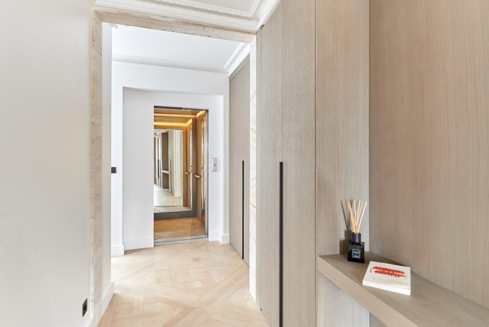 Appartement dexception face à lÉlysée 75 m² refait à neuf Découvrez ce superbe appartement entièrement rénové, situé au 3e étage dun immeuble prestigieux avec ascenseur privatif à code. Il se compose dune entrée élégante, dun spacieux salon lumineux avec cuisine américaine équipée et meublée, dune chambre avec dressing et salle de bain attenante. Lensemble est entièrement climatisé, décoré avec goût et baigné de lumière naturelle. Un bien rare, au cur du prestige parisien.