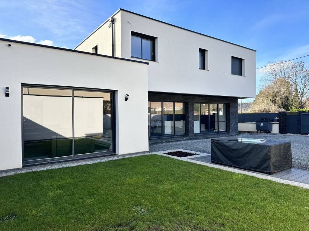 En exclusivité - A la frontière de Mont Saint Aignan village, sur la commune de Notre Dame de Bondeville, l'Ecrin Immobilier est heureux de vous présenter cette belle maison d'architecte achevée en 2024 de 173m2 habitable - 181 m2 au sol. La maison se compose d'un vaste séjour, d'une cuisine ouverte haut de gamme entièrement équipée et aménagée, une très belle cave à vin sur mesure vitrée et ventilée. A l'étage: un palier desservant trois grandes chambres avec dressing, une terrasse de 50m2 pour la suite parentale, une salle de bains douche - bains balnéo et espace lingerie. (Possibilité d'une 4ème chambre au rez-de-chaussée) La maison est équipée d'une pompe à chaleur et chauffage au sol pour un système énergétique ultra performant et un confort optimal au quotidien. Un vaste garage complète ce bien ainsi que la possibilité de rentrer dans le jardin deux ou troix véhicules. Terrasse en cours d'aménagement et/ou espace vert devant les baies vitrées. La Gare de Maromme est à 2 min à pied idéal pour accéder à Rouen en moins de 15 minutes. Quartier calme et résidentiel, écoles de proximité, commerces de la demi-lune, accès à l'Université de Mont Saint Aignan en quelques minutes également. Montant estimé des dépenses annuelles d'énergie pour un usage standart entre 816 euros et 1104 euros sur les années 2021 (abonnements compris). Les informations sur les risques auxquels ce bien est exposé sont disponibles sur le site . Prix honoraires agence inclus 525 000€, les honoraires de 4.8% Ttc de 23 000 euros sont à la charge de l'acquéreur.