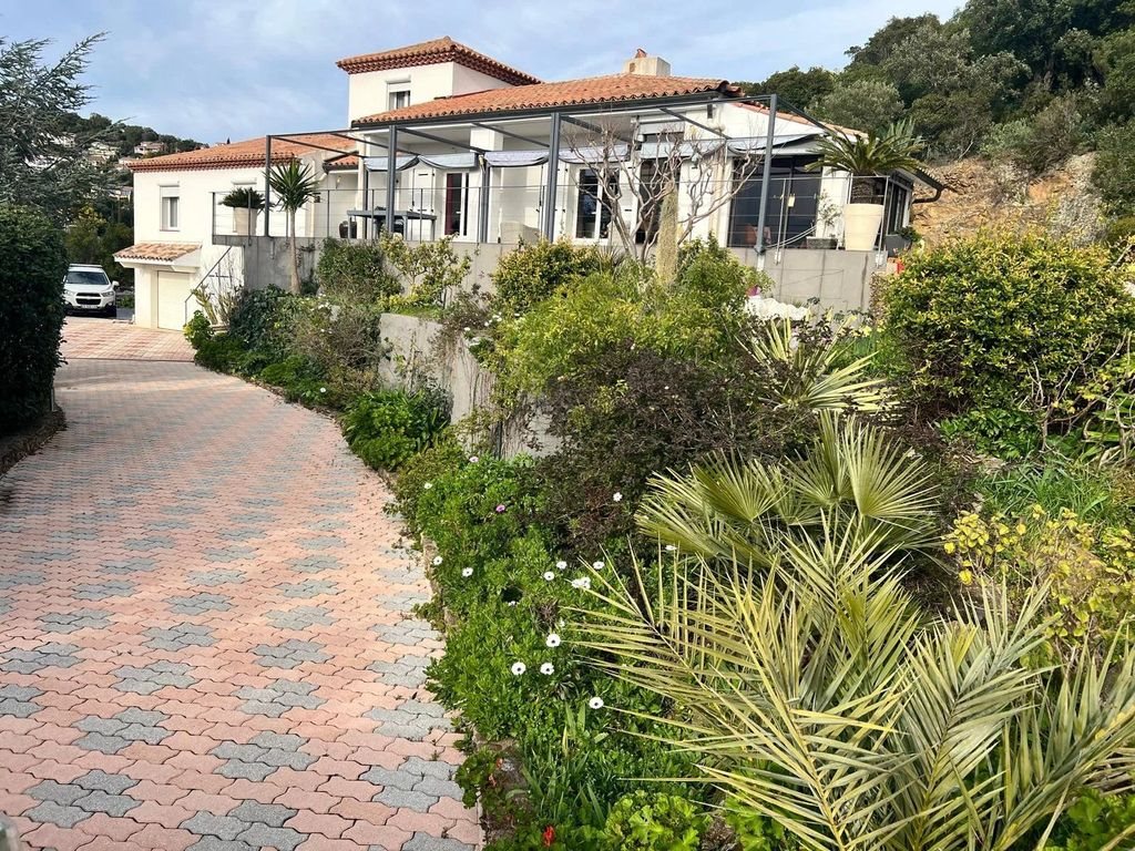 Nestled in a privileged setting in Les Issambres, this exceptional property of approximately 190 sqm captivates with its panoramic sea views and an atmosphere of absolute tranquility, entirely free from overlooking. Set on a magnificent 4,000 sqm landscaped plot planted with Mediterranean species, it offers a rare lifestyle defined by elegance, light, and privacy. On one level, the sun-drenched reception areas open seamlessly onto a vast south-facing terrace, inviting contemplation of the horizon. The fully equipped kitchen with utility room enhances everyday comfort. The luminous veranda forms a true relaxation lounge oriented toward the sea. The night area features three refined bedrooms, including a sumptuous suite with bathroom and dressing room, complemented by a shower room and guest toilet. An elegant mezzanine provides an ideal space for an office or additional bedroom, while on the lower level an independent bedroom with shower room welcomes family or guests in complete privacy. The property also benefits from a large basement and a double garage. Outside, a traditional saltwater infinity pool enhances this confidential residence, where absolute calm and high-end amenities combine to create a living environment of remarkable standing.