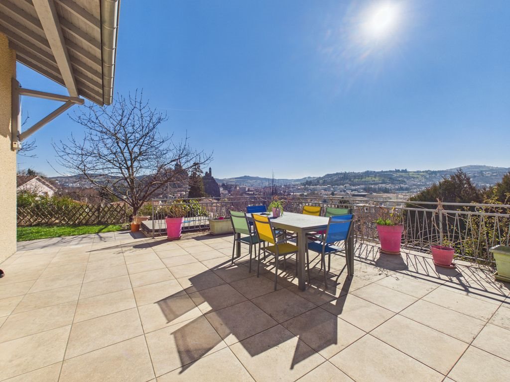 Maison T6 avec vue panoramique sur Le Puy-en-Velay, offrant 230 m2 habitables sur un terrain de 960 m2 avec vue dégagée. Cette propriété se compose d’un lumineux salon-séjour avec mezzanine, ouvert sur une belle terrasse offrant une vue dégagée sur le Puy. Une cuisine fonctionnelle, 5 chambres et 2 salles d’eau viennent compléter l’espace principal. La maison est équipée d’une pompe à chaleur, de menuiseries en double vitrage Pvc, de volets roulants et d’un système de récupération d’eau de source pour l’arrosage des extérieurs. Un beau jardin entoure la maison, avec un espace potager d’un côté et une agréable pelouse de l’autre, idéal pour profiter pleinement des extérieurs.Une dépendance indépendante complète le bien : elle dispose d’une cuisine, d’une salle à manger, d’une chambre et d’une terrasse privative — parfaite pour recevoir ou envisager un projet locatif. Un garage vient également compléter l’ensemble. Taxe foncière : 2 414 €. Pour plus de renseignements veuillez Camille Issartel au O6 Agent commercial entrepreneur individuel . Sas Ff Immobilier conseils 33 boulevard Maréchal Fayolle 43000 Le Puy-en-Velay Gérant : Mr Faure Guillaume Numéro de carte professionnelle Cpi 000 001- Cci de la Haute Loire valable jusqu’au Les honoraires sont à la charge du vendeur. Cette annonce vous est proposée par Issartel Camille - - NoRSAC: , Enregistré au Greffe du tribunal de commerce de Le Puy-en-Velay Les informations sur les risques auxquels le bien est exposé sont disponibles sur le site Géorisques :