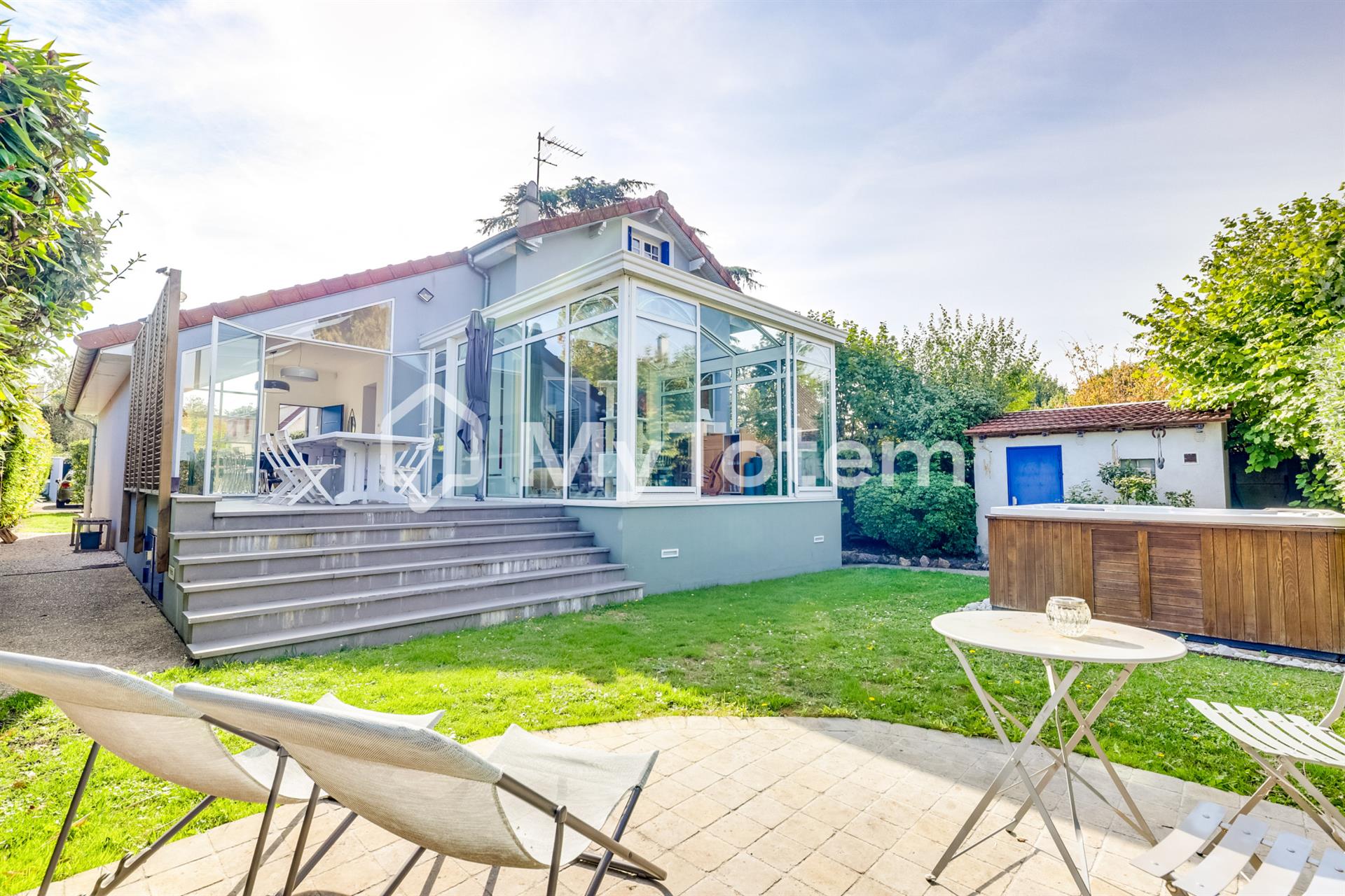 Exclusivité Mytotem ! Découvrez cette magnifique villa de 217.45m2 (242,94m2 au sol), une véritable parenthèse de sérénité sur un terrain arboré de 580m2. Cette adresse idéalement située sera parfaite pour une famille en quête de grands espaces, de charme et de confort absolu. Votre Havre de Paix Intérieur & Extérieur Espace de Vie accueillant et spacieux : Composé d'une grande salle à manger, une verrière, un salon une cuisine et son coin repas agrémenté d'un poële à bois, parfait pour vos réceptions et vos moments de convivialité, souligné par le charme intemporel d'une construction de 1949. Quatre Chambres Douillettes : Avec 4 chambres dont une au Rdc cette villa offre l'espace nécessaire pour chaque membre de la famille. Double Confort : Profitez de deux salles d'eau complètes, un luxe qui simplifie le quotidien des familles nombreuses. Sécurité et Tranquillité : L'alarme intégrée et le double vitrage vous assurent un confort et une sérénité totale. Aménagement optimisé : sous-sol complet avec son grand espace dressing, sa buanderie et son atelier pour y remiser ses vélos... Le Sanctuaire Extérieur : Jardin, Terrasse & JACUZZI Laissez-vous envoûter par votre espace extérieur privé, un véritable atout : Jardin Arboré de 400m2 : Un véritable écrin de verdure, paysager et isolé, offrant un cadre idyllique pour les jeux d'enfants, le jardinage ou les barbecues estivaux. Terrasse Profonde (13.85m2) : Directement accessible depuis la maison, cette grande terrasse est l'endroit parfait pour les repas en plein air. Espace Bien-être : Votre Jacuzzi Privé ! Imaginez-vous vous relaxer après une longue journée dans votre propre espace détente, à l'abri des regards. Commodités : Un parking extérieur sur le terrain de 580m2 facilite votre stationnement et peut accueillir deux véhicules. Une Localisation Privilégiée aux Portes de Paris Localisation synonyme de qualité de vie : Proximité Idéale de Paris : Bénéficiez d'une excellente connexion via le Rer E, vous reliant rapidement à la capitale tout en profitant du calme de la banlieue résidentielle. Cadre de Vie Paisible : Une adresse recherchée, à l'écart de l'agitation, mais à proximité des commodités, des écoles et des commerces du centre-ville. Environnement : Résidentiel et serein. Cette villa alliant volumes atypiques, charme de l'ancien et équipements modernes (dont le jacuzzi) est une opportunité unique. Contactez votre agence MyTotem sans attendre pour organiser une visite et vous projeter dans ce lieu d'exception !