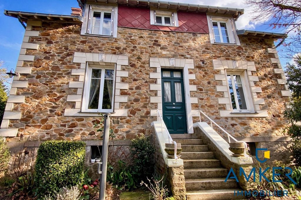 Exclusivité - Maison d'habitation 138,22m2 Habitable, 144,33m2 au sol. Et 209,73m2 avec avec le sous-sol. Centre-Ville de Rezé – Proximité Place du 8 Mai. À vendre, remarquable maison d'habitation de caractère, au coeur d'un parc arboré clos de murs de 1 045 m². La maison se compose, au rez-de-chaussée surélevé, d'une entrée, dégagement, une pièce de vie traversante, une cuisine, une chambre ou un bureau et un Wc. À l'étage, un palier distribue quatre chambres dont une avec douche et lavabo, une salle d'eau avec douche, double vasque et Wc séparés. En sous-sol, une vaste cave complète l'ensemble. Pompe à chaleur récente. Garage 2 voitures. Cette propriété séduit par son fort cachet architectural, avec notamment ses encadrements et chaînages d'angle en pierre taillée, ses chiens-assis et ses deux escaliers extérieurs en pierre aux garde-corps maçonnés. L'intérieur conserve de nombreux éléments anciens : parquet et escalier d'origine, vitrail, radiateurs en fonte et moulures au plafond. Un véritable esprit nature en ville, grâce à son parc arboré agrémenté de beaux sujets, dont un grand chêne. Situation privilégiée, à proximité des commerces, marché les vendredis, boulangerie, des commodités, écoles et des transports, avec la ligne de tramway n°3 et les bus, le tout accessible à pied. Honoraires inclus de 4.5% Ttc à la charge de l'acquéreur. Prix hors honoraires 650 000 €. Classe énergie C, Classe climat B Montant estimé des dépenses annuelles d'énergie pour un usage standard : entre 2150.00 € et 2970.00 € sur les années 2021, 2022 et 2023 (abonnements compris). Les informations sur les risques auxquels ce bien est exposé sont disponibles sur le site Géorisques : . Votre conseiller Amker : Julien G Agent commercial (Entreprise individuelle)