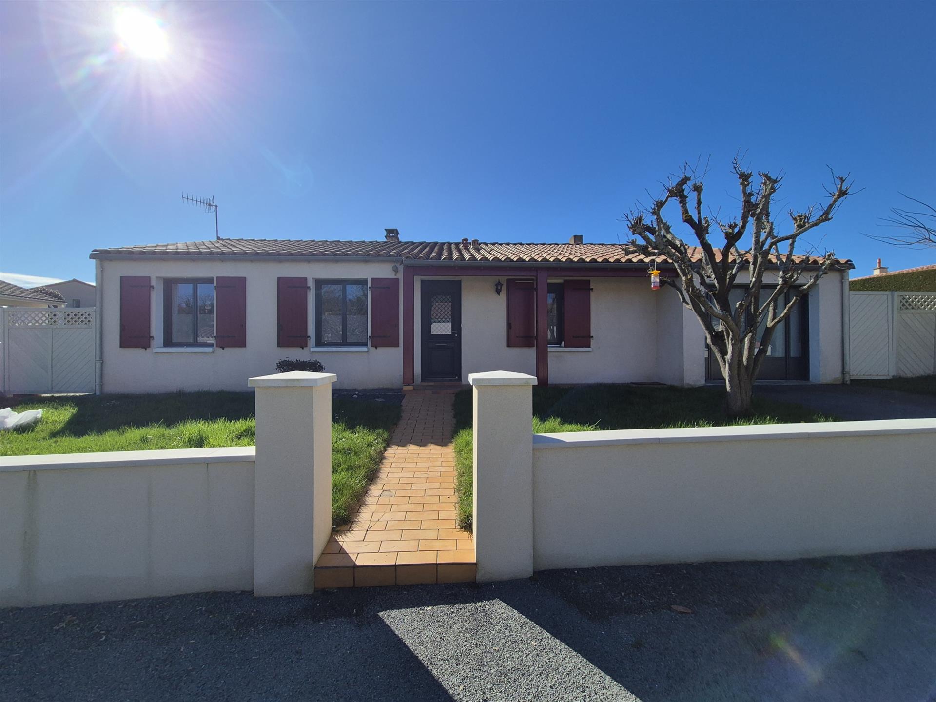 Mélanie Puaud Ma Compagnie Immobilière vous présente cette maison de plain-pied de 117 m2 habitables, située à Pouzauges, dans une impasse d’un quartier calme, à proximité des commodités. Ce bien se compose d’une entrée, d’une cuisine aménagée ouverte sur un salon-séjour donnant accès à une jolie terrasse. Un couloir dessert une salle de bains, trois belles chambres dont deux avec placards, ainsi que des Wc indépendants. Vous trouverez également une buanderie et une quatrième chambre de 14 m2 équipée d’un point d’eau, idéale pour l’installation d’une douche (un meuble vasque est déjà présent). Cette maison est édifiée sur une parcelle de 494 m2 avec jardin clos et abri de jardin. Le chauffage est assuré par un poêle à granulés, complété par des radiateurs électriques. L’Assainissement est raccordé au tout-à-l’égout. Travaux réalisés depuis 2016 : remplacement des ouvertures et des volets, réfection de la couverture, installation du poêle à granulés, isolation des combles, aménagement de la terrasse, réfection du mur de clôture avant et des canalisations extérieures. Pour plus d’informations, n’hésitez pas à me . Annonce rédigée par un agent mandataire. - Annonce rédigée et publiée par un Agent Mandataire -