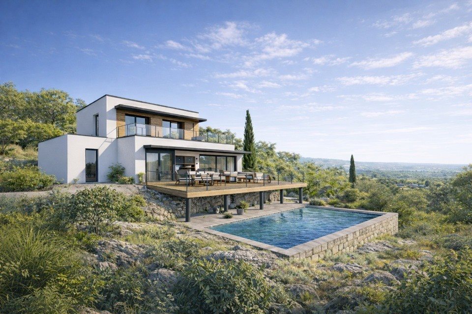 Villa Contemporaine d'Exception - Projet 100 % Personnalisable - O7 77 7O 14 31La Valette-du-VarDans un secteur résidentiel privilégié offrant une vue mer dominante, découvrez un projet exclusif terrain + construction de 150 m² aux prestations de très haut standing.Ce projet est entièrement conçu et réalisé par Maisons France Confort, leader national de la construction de maisons individuelles, reconnu pour la qualité de ses réalisations, sa solidité financière et son exigence technique.Une villa contemporaine... Entièrement à votre imageArchitecture cubique, lignes épurées, larges baies vitrées ouvertes sur l'horizon...Ce projet présenté est une inspiration.Avec Maisons France Confort, votre maison est 100 % personnalisable : ? Plan entièrement sur mesure ?️ Adaptation architecturale au terrain et à la vue ?️ Organisation intérieure repensée selon votre mode de vie ?️ 3 ou 4 chambres, suite parentale, bureau, salle de sport... ? Terrasses panoramiques, piscine à débordement, rooftop possible ? Choix complet des matériaux et finitions haut de gamme ⚙️ Domotique, confort thermique dernière générationChaque détail est étudié avec vous : volumes, luminosité, implantation, prestations techniques et esthétiques.L'expertise Maisons France ConfortChoisir Maisons France Confort, c'est bénéficier : D'un accompagnement global (conception, permis, financement, réalisation) De garanties constructeur sécurisées D'une maîtrise technique reconnue au niveau national D'un suivi personnalisé à chaque étape du projetUn cadre sécurisé pour concrétiser une propriété d'exception, sans compromis sur la qualité.Prix global terrain + maison : 945 000 € Hors frais d'adaptations, terrassement ...Un projet haut de gamme, évolutif et entièrement conçu selon vos exigences.Geoffrey MesiniChargé de projetO7 77 7O 14 31Maisons France Confort La Farlede