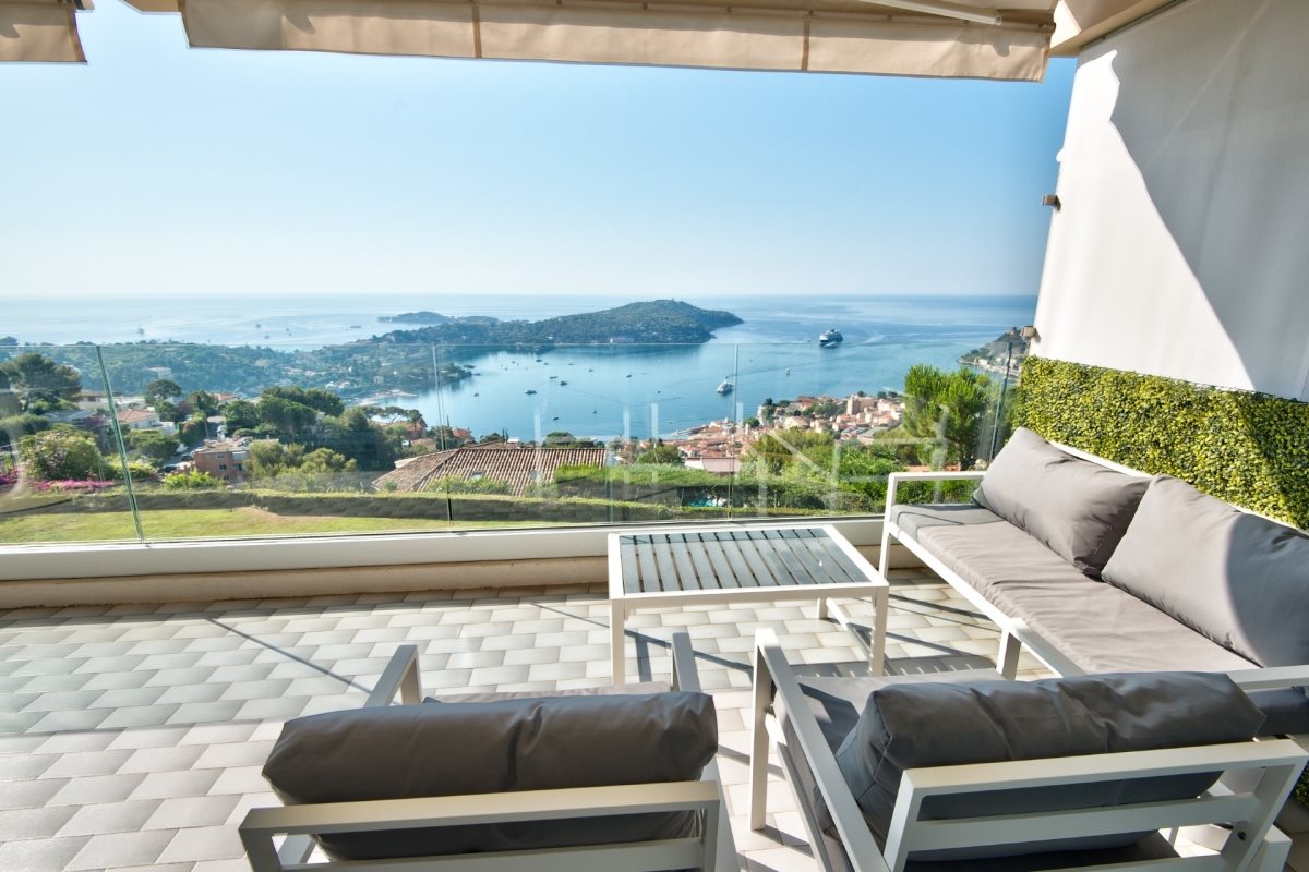 Dans l'un des secteurs les plus recherchés de Villefranche-sur-Mer, au sein d'une résidence élégante et intimiste de seulement trois étages, découvrez ce superbe appartement entièrement rénové, offrant un cadre de vie rare entre calme, lumière et panorama d'exception. Situé au deuxième étage, l'appartement s'ouvre sur une magnifique pièce de vie baignée de lumière avec cuisine ouverte, prolongée par une terrasse d'environ 20 m². Depuis cet espace extérieur privilégié, la vue est tout simplement spectaculaire, embrassant la rade de Villefranche-sur-Mer et le prestigieux Cap Ferrat. L'espace nuit se compose de deux chambres, dont une superbe chambre principale tournée vers la mer permettant de profiter de ce panorama dès le réveil. Une élégante salle de douche ainsi que des toilettes indépendantes complètent ce bien. Une cave vient parfaire les prestations. En complément du prix, il est possible d'acquérir un garage ainsi qu'une chambre indépendante d'environ 20 m² avec cuisine et salle d'eau, idéale pour recevoir ou pour un usage indépendant.