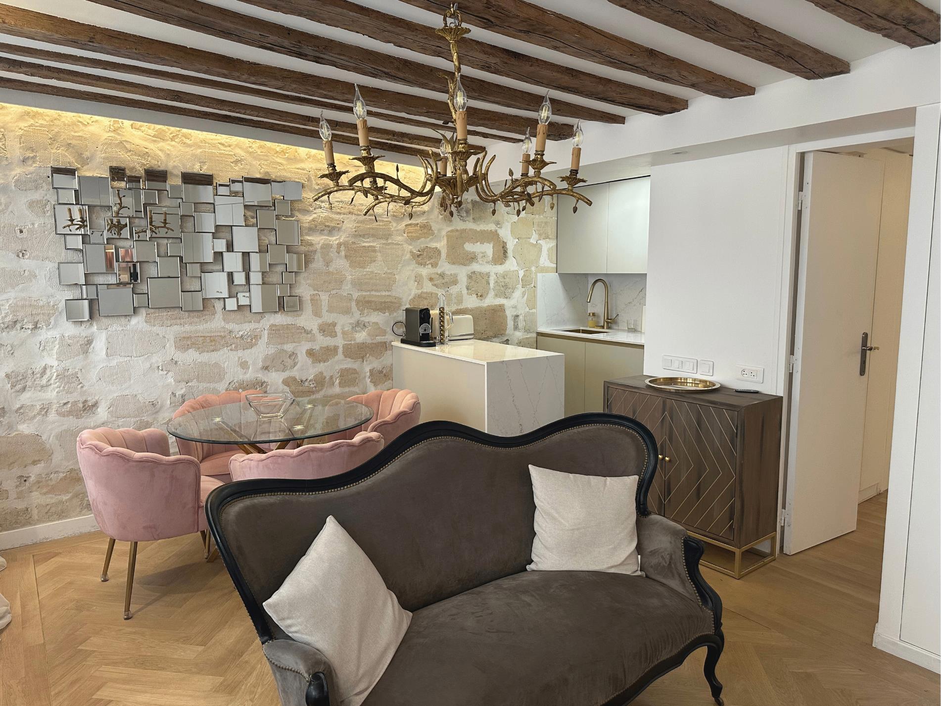 Off Market – Paris 3e - 2 pièces – Rue Pastourelle Découvrez ce superbe 2 pièces de 39 m², niché au 1er étage d’un immeuble ancien, au cœur du Marais. Entièrement repensé avec une rénovation haut de gamme, il marie à la perfection le charme de l’ancien - poutres apparentes et pierres de taille - et une décoration élégante digne d’un hôtel-boutique. À deux pas du Musée Picasso et de toutes les adresses prisées du quartier. 39m2 1er étage Dpe E