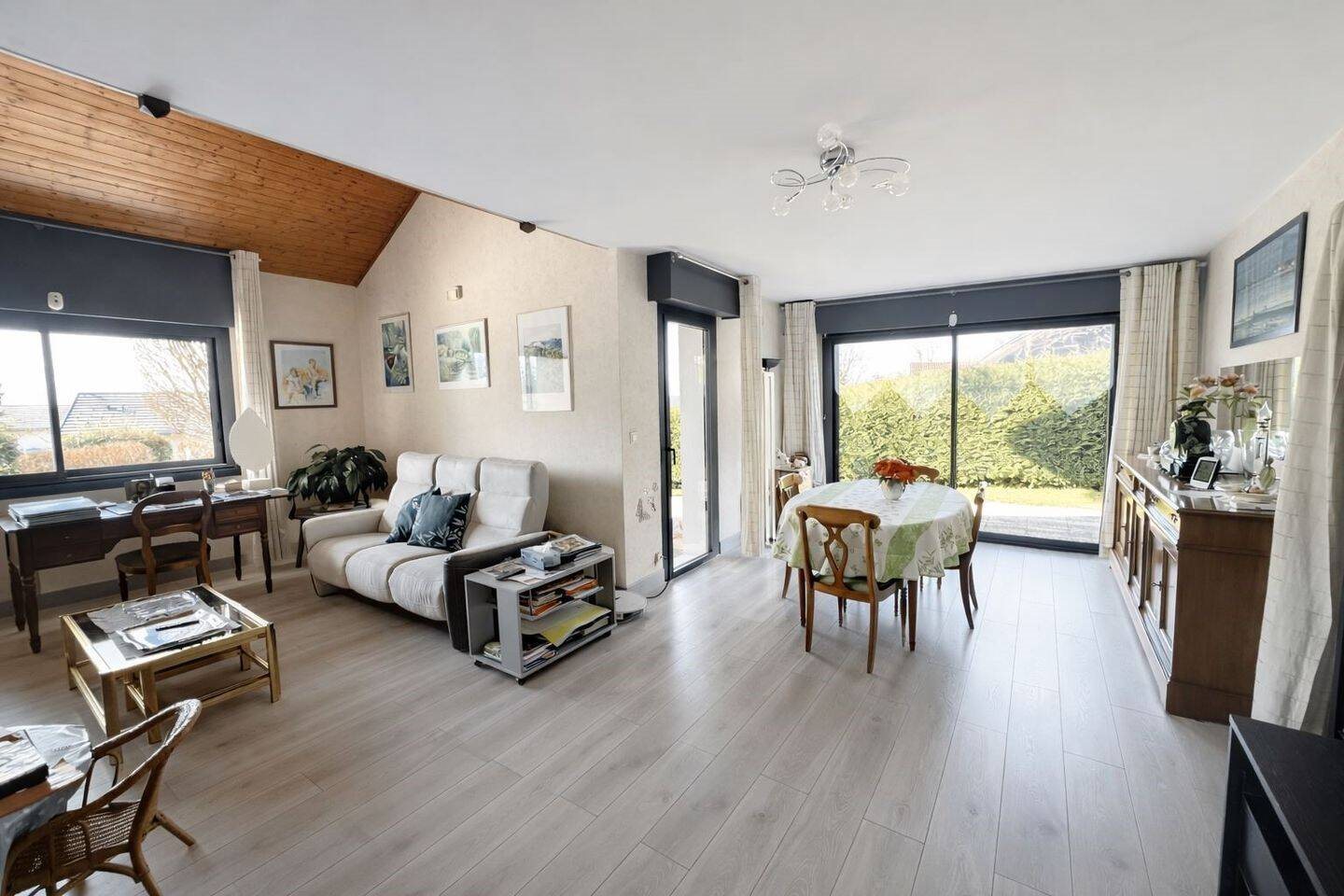 Maison avec piscine, composée de deux logements et vue montagnes Villaz - Exclusivitéà Villaz, dans un secteur résidentiel très recherché, à seulement 2 minutes en voiture du chef-lieu, découvrez cette belle maison darchitecte construite en 1980, implantée sur un terrain de 1 534 m², offrant une vue dégagée sur les montagnes et un cadre de vie calme et privilégié.La propriété se compose de deux maisons attenantes, permettant de multiples usages : grande maison familiale, projet intergénérationnel, résidence avec logement indépendant ou investissement locatif.Maison principale env. 120 m²Lentrée souvre sur un hall avec rangements, Wc avec lave-mains et accès direct au garage. Vous découvrirez un salon-séjour lumineux avec cheminée, idéal pour les moments conviviaux, ainsi quune cuisine indépendante Mobalpa.Un atelier situé au-dessus du garage et des rangements sous escalier complètent ce niveau.À létage, lespace nuit propose :Une première chambre en mezzanine avec rangements, deux chambres avec placards, une salle de bains, un Wc uxième maison attenante de 99 M2Entièrement fonctionnelle et indépendante, elle comprend un hall dentrée, un Wc avec lave-mains, un séjour avec cheminée, une cuisine indépendante, un cellier, ainsi que trois chambres équipées de placards. Accès direct au garage.Le terrain accueille une piscine de 10,33 x 4,75 m, avec une profondeur allant de 1,10 m à 1,80 m, parfaite pour profiter des beaux jours.Lensemble des menuiseries a été remplacé en 2017 et la maison est équipée de volets roulants électriques.les Atouts clés de cette propriété :Maison darchitecteDeux logements attenantsTerrain de 1 534 m²PiscineVue montagnesMenuiseries récentesSecteur calme et qualitatifProximité immédiate des commoditésIl s'agit d'un bien rare sur le secteur de Villaz, offrant de beaux volumes, une grande modularité et un environnement naturel privilégié.