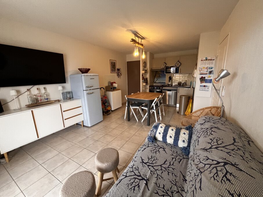 À vendre Appartement T2 cabine à Sainte Marie la mer Maël Pennamen Isis Immobilier vous propose cet appartement de type T2 cabine, d’une superficie totale de 38 m2. L’appartement, libre de toute occupation se trouve au 1ᵉ étage et offre : Un séjour lumineux avec cuisine ouverte, Une chambres de 10,5 m2 et une cabine de 4,5 m2, Une salle d’eau, Une agréable terrasse vue sur le parc. Idéalement localisée, la résidence est à proximité de toutes les commodités essentielles. Prix : 150 000 € frais d’agence inclus. Pour plus d’informations, contactez-nous dès maintenant ! N'attendez plus pour visiter.