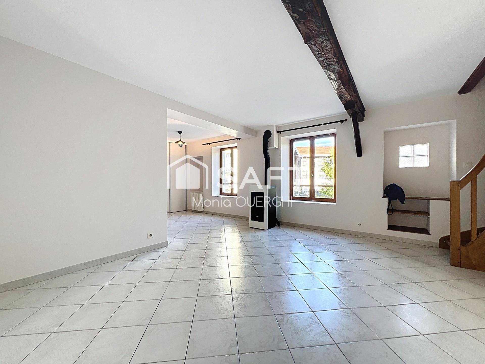Idéalement situé, il se trouve à deux pas de la gare de Tullins, des commerces et des écoles, ce qui en fait un bien pratique et agréable à vivre. Situé au premier étage d’une petite copropriété, découvrez ce charmant appartement en duplex de 3 pièces, d’une surface habitable d’environ 69 m², complété par une cave en rez-de-chaussée de 8 m² et une place de stationnement extérieure privative. Au premier niveau, vous profiterez d’une entrée, d’un séjour lumineux de 18,5 m² avec poutres apparentes, d’une cuisine semi-ouverte aménagée de 13,8 m² (avec placard), ainsi que d’un Wc indépendant. À l’étage, l’espace nuit se compose d’un palier avec rangements, de 2 chambres confortables (10,6 m² et 13 m² avec placard) ainsi qu’une salle d’eau rénovée et un 1 Wc. Cet appartement bénéficie de travaux récents : cuisine moderne, peintures, ainsi que la réfection de la toiture. Le chauffage est assuré par un poêle à granulés complété par des radiateurs électriques. Le bien comprend 3 lots, et il est situé dans une copropriété de 4 lots Les informations sur les risques auxquels ce bien est exposé sont disponibles sur le site Géorisques : Loyer mensuel charges comprises : 747 € Charges locatives mensuelles au forfait : 17 € Dépôt de garantie : 730 € Honoraires à la charge du locataire : 567,04 € Honoraires d'agence : 6,47 % Ttc du loyer annuel Hc, à la charge du locataire Contactez votre conseiller Safti : Monia Ouerghi, Tél. : , E-mail : - Ei - Agent commercial immatriculé au Rsac de Grenoble sous le numéro 533 573 184