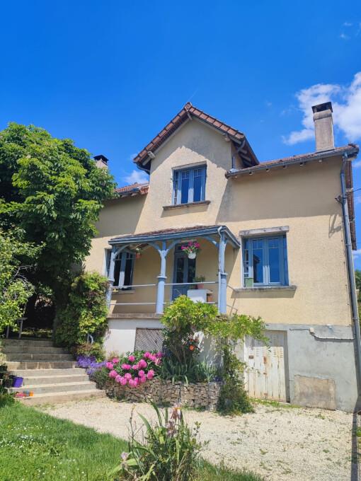 Secteur Tourtoirac, proche Hautefort. Vue panoramique - 2 balcons et une terrasse. Maison individuelle, batîe en partie sur cave. Parcelle cadastrée : 574m2. Un ancien atelier (40m2) construit, à proximité de l'habitation. Une cave. Ce logement (entièrement restauré) se compose en rdc : une cuisine aménagée, un salon (env 40m2) avec un poêle à bois, une chambre (env 13m2), une salle de bain, toilettes. Etage : 3 chambres avec chacune un dressing, une salle d'eau avec douche + wc. Isolation en double vitrage. Murs extérieur doublés. Chauffage fioul (chaudière récente) + bois - chauffe-eau électrique. Dpe : classe C. Tout à l'égout. Mr Michel Lachaud, agent commercial en immobilier tél pro , pour tout complément d'information et visites.