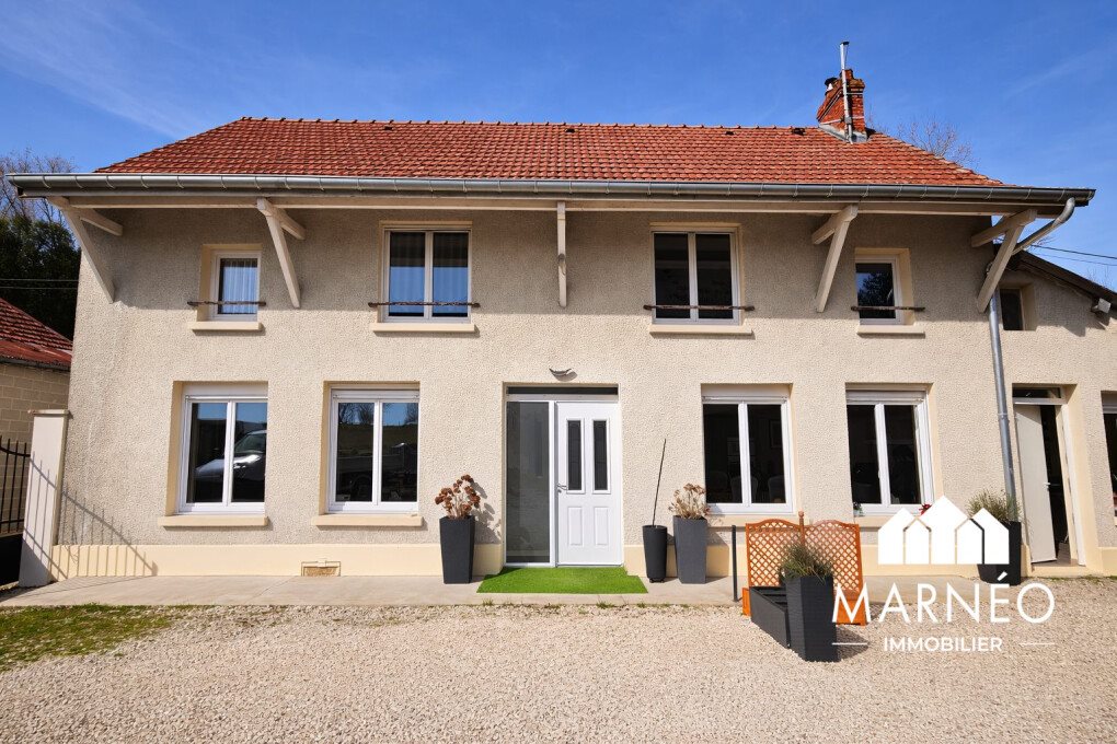 Mandat N°85Marnéo Immobilier vous invite à découvrir cet ancien corps de ferme entièrement rénové avec goût, un bien rare offrant volume, charme et un fort potentiel pour de nombreux projets !Dès l'entrée, la maison s'ouvre sur une belle pièce de vie spacieuse et lumineuse avec une partie cuisine dinatoire. Le rez-de-chaussée, habitable de plain-pied, dispose d'une grande chambre, d'une salle de bain avec baignoire et douche, d'un Wc indépendant, ainsi que d'une immense buanderie / chaufferie et d'une cave voûtée.À l'étage, une vaste pièce palière idéale comme espace bureau ou coin détente, dessert trois belles chambres avec dressing ainsi qu'une salle d'eau avec WC.Ce bien offre également un fort potentiel grâce à ses dépendances :Une écurie viabilisée de 160 m², idéale pour un gîte, des chambres d'hôtes ou un projet locatif,Une grande grange de 280 m², parfaite pour un artisan, du stockage ou un futur aménagement.L'ensemble est implanté sur un grand terrain arboré, agrémenté de plusieurs arbres fruitiers, offrant un cadre agréable et de belles possibilités d'aménagement extérieur.Vous souhaitez plus d'informations, contactez-nous au voir le numéro !Classe énergie C, Classe climat A Montant estimé des dépenses annuelles d'énergie pour un usage standard : entre 600.00 et 991.00 sur les années 2021, 2022 et 2023 (abonnements compris). Les informations sur les risques auxquels ce bien est exposé sont disponibles sur le site Géorisques : . Votre conseiller Marnéo Immobilier : Morgane BOURAQUILAgent commercial (Entreprise individuelle)