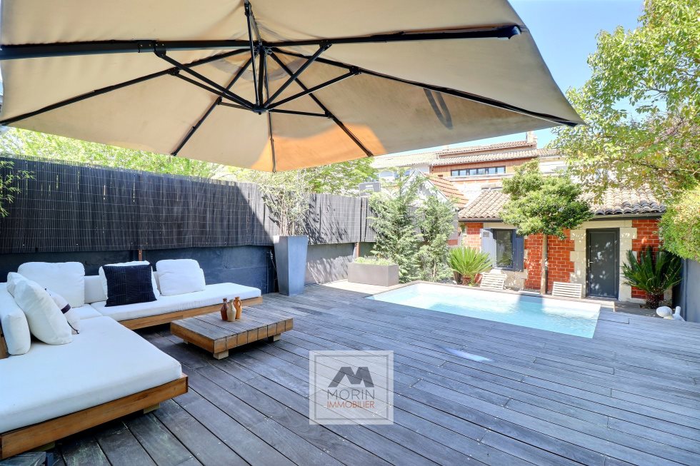 - Bordeaux quartier Croix Blanche proche Judaïque - Le Cabinet Morin vous propose à la vente une charmante maison bordelaise en pierre au calme à proximité des commerces, des écoles et des transports. La maison dispose au rez-de-chaussée d'une belle entrée, d'une pièce de vie lumineuse avec cuisine aménagée ouvrant largement sur une belle terrasse en bois avec piscine, d’un salon et d'un wc. L’Escalier en pierre permet d’accéder au premier étage, constitué d’une suite parentale de 22 m2 avec salle de bain et dressing ainsi qu’une autre chambre de 23 m2 avec salle d’eau. Dans le jardin, vous trouverez une charmante dépendance en brique rouge de 18 m2, aménagée avec une chambre, salle d’eau et wc ainsi qu’une jolie piscine. Le tout baigné de lumière et aménagé avec soin. Une cave au sous-sol de la maison complète l'ensemble. Les volumes généreux, les parquets massifs, les cheminées en marbre sont autant d’atouts pour cette belle maison bourgeoise. Lignes de bus : 1- 2 - 16 - 70 - la ligne 9 pour la gare Saint-Jean et les nouvelles ligne G et H. Le prix indiqué comprend les honoraires d'agence de 3,5 % à la charge de l'acquéreur.