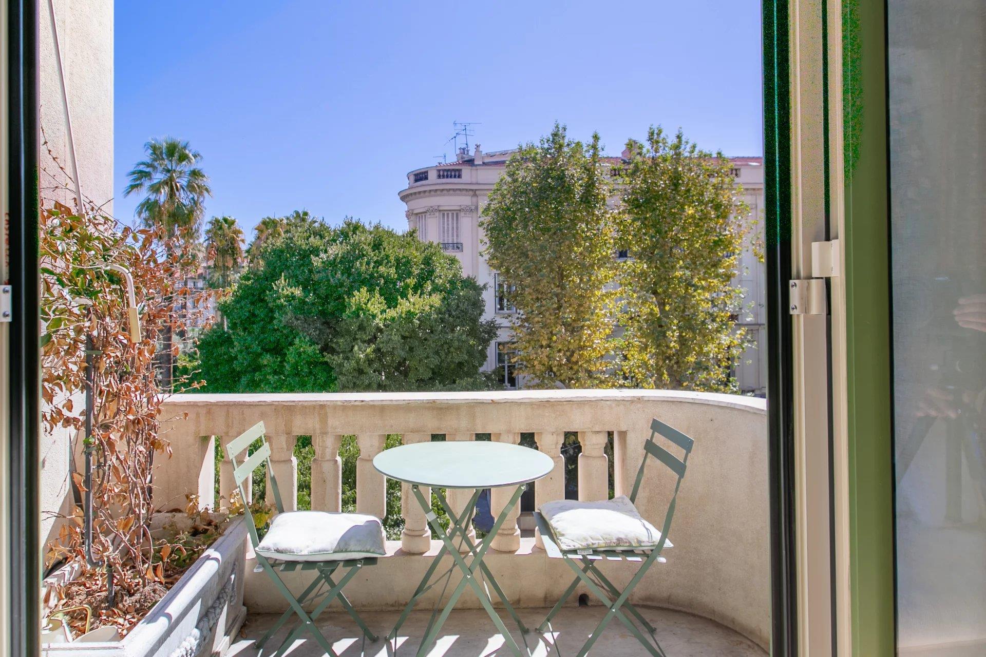 Nice Centre / Victor Hugo : Une vue dégagée sur le jardin Jean Moreno, situé à 10 minutes de la mer, à deux pas du tramway et des commerces, en étage médian d'un bel immeuble avec ascenseur, découvrez ce magnifique 2/3 pièces en parfait état offrant un emplacement de 1er choix et une belle luminosité. Cet appartement est composé d'une entrée, d'un séjour, d'une salle à manger, une cuisine équipée, d'une chambre, de deux salle d'eau avec toilettes, et d'un beau balcon.Actuellement en configuration une chambre, il serait transformable en deux voire trois chambres. L'appartement bénéficie également d'une cave possibilité de louer une place de parking dans un immeuble attenant à la copropriété. Honoraires d'agence de 5% inclus à la charge du vendeur. Les informations sur les risques auxquels ce bien est exposé sont disponibles sur le site Géorisques :