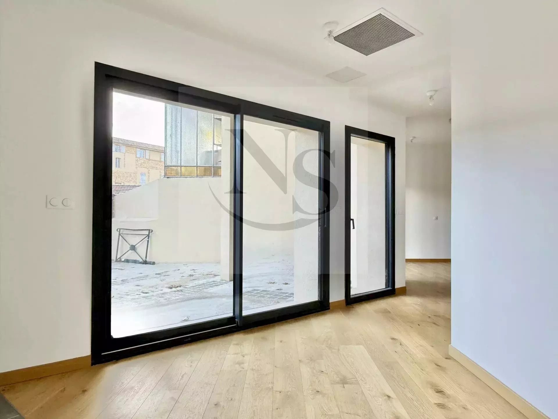 Le groupe Nicolas Staes vous présente à la vente dans le centre ville d’Aix-en-Provence proche de la fontaine de la rotonde au calme absolu cet appartement climatisé traversant entièrement rénové de type 3 d’une superficie de 68,7 m2 avec terrasse de 34,9 m2. Situé au 1 er étage d’un petit immeuble bien entretenu. L’Appartement développe un beau salon avec une belle hauteur sous plafond, 2 chambres, 1 salle de douche et toilette séparé.