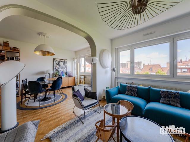 Descriptif de l'annonceC'est dans les hauteurs lumineuses du quartier résidentiel de l'Orangerie que nous vous invitons à découvrir « Martinelli », notre nouvelle pépite : un appartement à la géométrie fluide, baigné de lumière, où l'esthétique se fond dans le quotidien. Inspiré de l'univers d'Elio Martinelli, créateur des célèbres luminaires Cobra et Serpente, ce lieu conjugue avec naturel design radical, lignes douces et ambiance solaire. C'est au 6? étage avec ascenseur d'un immeuble très bien entretenu du boulevard de la Marne que débute la visite de « Martinelli », un appartement traversant Est-Ouest de 103 m² Carrez, avec vue dégagée sur les toits strasbourgeois. Une rareté en coeur de ville. Derrière sa porte blindée, une entrée agrémentée de nombreux rangements vous accueille et mène à un vaste salon-séjour de 38 m², orienté plein Est, inondé de lumière matinale. Les arrondis architecturaux et le dialogue entre matières brutes et finitions vintage offrent un cadre aussi chaleureux qu'élégant. À l'Ouest, la cuisine meublée et équipée, pensée comme un véritable espace de vie, s'ouvre sur un balcon baigné de soleil en fin de journée. Un lieu parfait pour ralentir. Côté nuit, « Martinelli » dispose de deux belles chambres aux volumes généreux. La première, de 16 m² Carrez, orientée Est, avec accès à un balcon, idéale pour un réveil en lumière. La seconde, orientée Ouest, tout aussi spacieuse avec ses 17 m² Carrez. Une salle de bain avec fenêtre, aux finitions soignées, ainsi qu'un Wc séparé, viennent compléter la distribution. Ce que « Martinelli » réunit : un emplacement de premier ordre dans l'Orangerie, une vue dégagée en étage élevé avec ascenseur, une traversée Est-Ouest, deux extérieurs, du parquet, des rangements intégrés, une électricité aux normes, un bonne performance énergétique. « Martinelli », c'est plus qu'un nom : c'est un lieu pensé pour durer, habiter et profiter lumineux, fluide, prêt à être vécu. Dpe D/D (chauffage et eau chaude collectifs). Montant estimé des dépenses annuelles d'énergie pour un usage standard, abonnement compris : entre 1 770 € et 2 450 € (base de consommation années 2021, 2022 et 2023) Bien soumis au statut de la copropriété, nombre de lots : 102 (dont 38 d'habitations). Bilan prévisionnel de charges : 6 000 € par an, soit environ 500 € par mois (chauffage et eau chaude collectif inclus). Prix honoraires inclus : 469 000 € Honoraires : 6,84 % Ttc à la charge de l'acquéreur. Prix hors honoraires : 439 000 € nets vendeurs. Les informations sur les risques auxquels ce bien est exposé sont disponibles sur le site Géorisques : Jean-François Gross pour visiter. Prix: 469000€ Honoraires à la charge de: Acquéreur Pourcentage honoraires: 6.83% Prix hors honoraires: 439000€ Bien en copropriété: Oui Charges de copropriété: 0€ Nombre de lots dans la copropriété: 102 Copropriété sous procédure: Non Numéro de mandat: Agent immobilier: Jean-François Gross Téléphone mobile: Url tarifs publics: