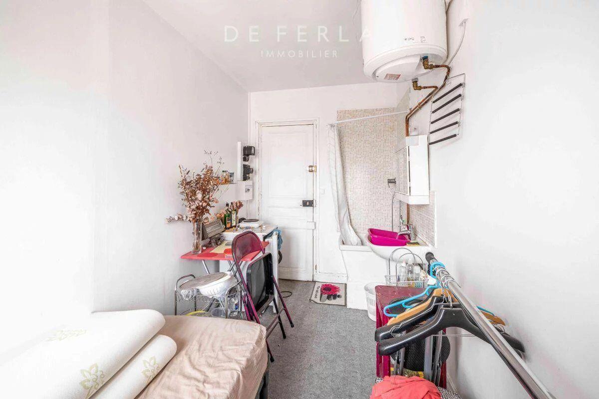 Au 6ème et dernier étage avec ascenseur d'une belle copropriété en pierre de taille, une studette de 8,4 m² disposant d'un espace d'eau, d'une douche, un espace de couchage, ainsi qu'un espace kitchenette. Vue dégagée au calme et luminosité sont les forces de cette studette en bon état.