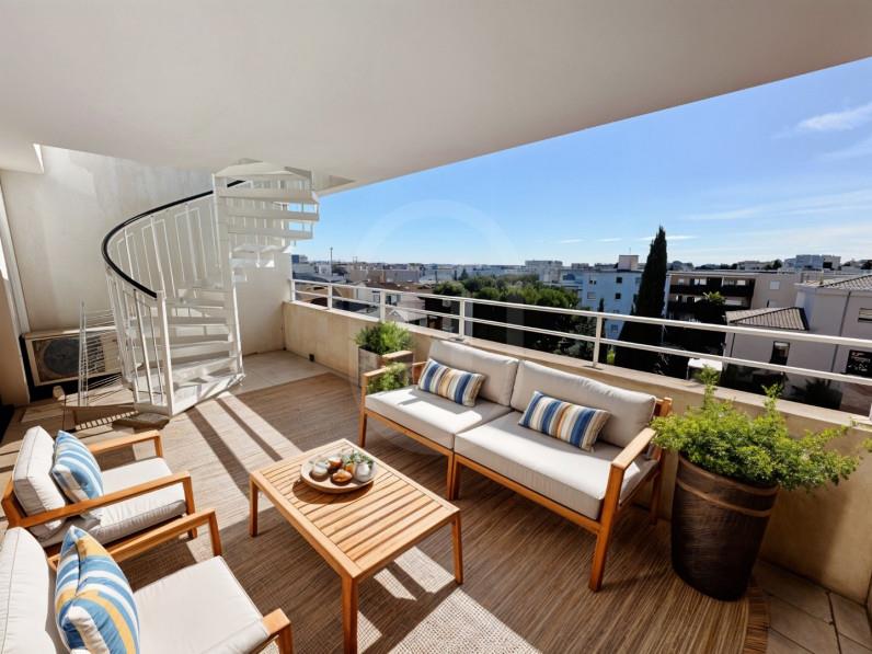 Au sein d’une résidence récente de standing, découvrez ce magnifique appartement T3 traversant, niché au dernier étage. En parfait état, il offre une belle pièce de vie lumineuse avec cuisine équipée, s’ouvrant sur une agréable terrasse de 17 m². Son atout majeur : un rooftop privatif de 45 m², idéal pour profiter des beaux jours. Côté nuit, deux chambres avec placards, une salle d’eau et un Wc. Un garage sécurisé vient compléter ce bien rare sur le secteur. Contact Arthur Germain . Bien soumis au statut juridique de la Copropriété. Pas de procédure en cours. Surface Carrez : 69.15 m² Prix Ttc et Honoraires à charge vendeur Ttc Montant estimé des dépenses annuelles d'énergie pour un usage standard : entre 670 € et 970 € par an.
