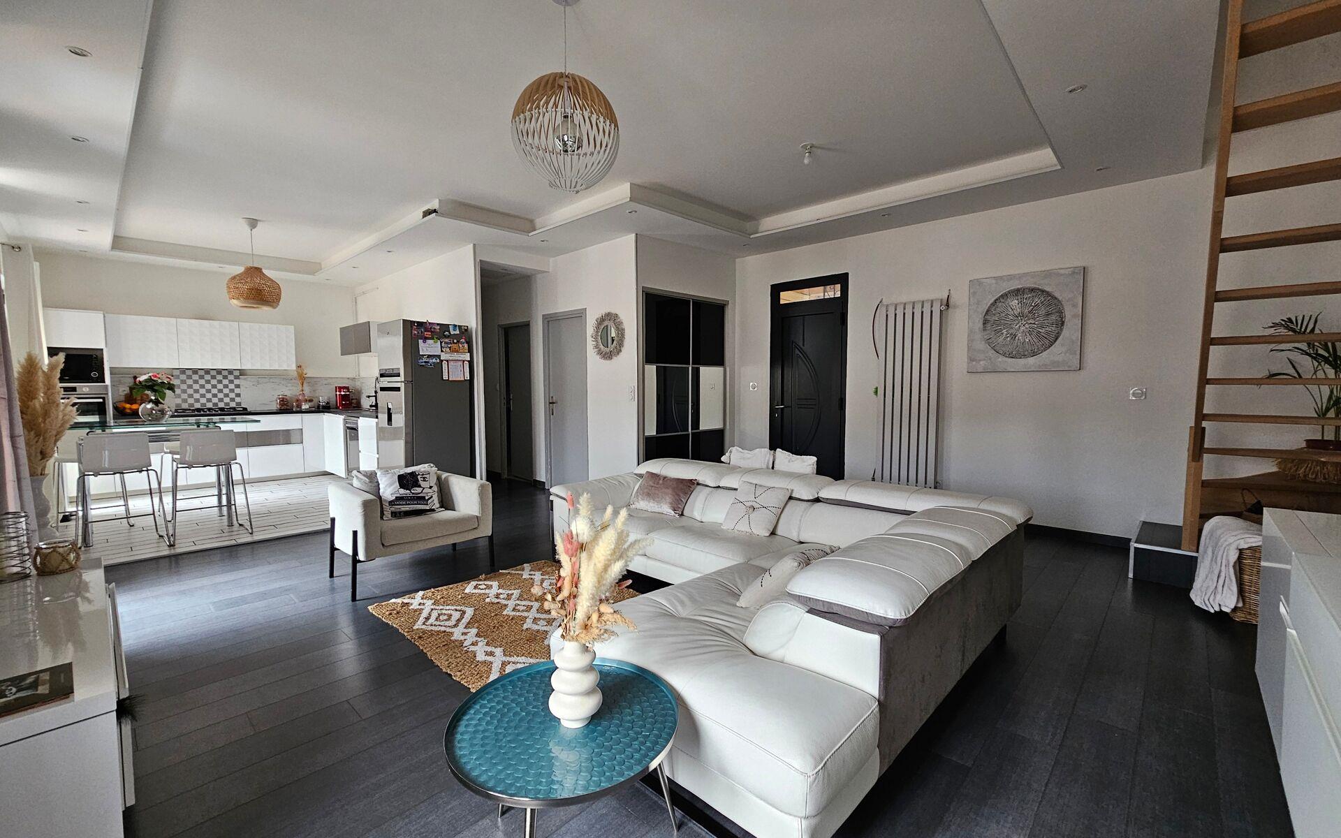 Saint Etienne Colline des Pères - T5 en duplex tres bon état - 137,22 m² Carrez (175 m² au sol) - 4 chambres - pièce de vie 47 m² - 2 balcons - terrasse arrière commune. Saint Etienne Ouest, secteur Tardy/Colline des Pères, seulement dans votre agence Orpi Chateaucreux, hyper centre (Place du Peuple) accessible à pied en 15 mn, tram accessible en 9 mn, au calme, au 2 ieme étage sans ascenseur d'une copropriété de 2 logements sans charges (hors mis assurance de l'immeuble), T5 de 137 m² carrez (175 m² au sol), en duplex, rénové , en très bon état, lumineux, offrant 4 chambres et 2 balcons dont 1 avec vue dégagée et agréable. Vous entrez directement dans une grande pièce de vie, très accueillante de 47 m² avec cuisine carrelée équipée de meubles hauts et bas, plan de travail stratifié, lave-vaisselle, plaque cuisson 5 gaz de ville, four et une hotte. Cette pièce ouvre sur un balcon d'environ 6 m² exposé Sud / Sud-Ouest à la vue dégagée et agréable. Sur ce même niveau, un couloir dessert 2 chambres de 12,79 m² et 11,32 m² équipées de rangements, parquet flottant au sol, une buanderie avec accès à un balcon , une salle de douche de 6,32 m² en parfait état offrant une vaste douche fermée, 1 meuble double vasque, miroir et fenêtre et un Wc indépendant (suspendu) avec lave main. A l'étage, un grand dégagement de 17 m² carrez idéal pour les jeux d'enfant avec coin bureau (idéal pour le télétravail !) et de nombreux rangements en sous pente, dessert 2 autres chambres de 16 m² carrez (31 m² au sol environ) et 6,92 m² carrez environ (13,18 m² au sol) toutes deux équipées de velux, une salle de douche de 4,5 m² carrez environ (grande douche, velux, sèche serviette, meuble sous vasque, miroir) et un Wc indépendant avec lave main. Nombreux rangements dans l'appartement. Une terrasse en copropriété d'environ 40 m² est accessible par les 2 logements à l'arrière de l'immeuble (orientation nord est). Taxe foncière environ 1400€. Charges environ 33€/mois pour l'assurance de copropriété. Belles fenêtres en double vitrages Pvc récentes + volets roulants électriques- murs isolés par l'intérieur - plafond et sols isolés. Chauffage gaz de ville chaudière Leblanc 2016 -Radiateurs récents avec vannes thermostatiques- Toit récent (6 ans environ)- Un appartement familial très séduisant qui ravira une jeune famille en recherche d'espace à 2 pas de l'hyper centre ...!