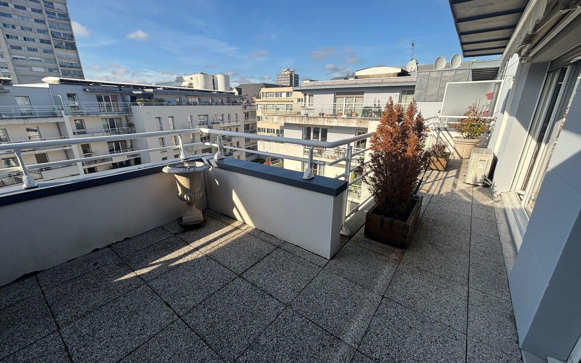 Appartement À Vendre. Rouen, rue des Emmurées. Dans une belle copropriété, 'Le clos de l'Amiral", au dernier étage, un appartement offrant un grand séjour salon traversant donnant sur deux terrasses, cuisine aménagée, 3 chambres (4ème possible en réduisant le séjour), deux pièces d'eau, 2 Wc Un stationnement couvert en sous-sol.