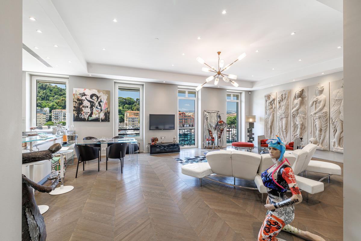Idéalement situé face au bassin du Port de Nice, dans un immeuble historique avec ascenseur, ce superbe appartement de 116 m² séduit par son caractère unique, sa vue dégagée sur le port, la mer et la colline du Château, ainsi que par ses volumes généreux et sa luminosité exceptionnelle. Entièrement rénové avec des prestations haut de gamme, il offre un cadre de vie élégant et contemporain au cœur d'un quartier vivant et recherché. Descriptif : -Superficie de 116 m² habitables -Superbe pièce de vie d'environ 75 m², avec plafonds hauts et quatre grandes ouvertures donnant sur le port -Cuisine ouverte, moderne et entièrement équipée -Suite parentale avec salle d'eau, douche à l'italienne et espace dressing -Deux balcons offrant une vue panoramique sur le port, la mer, le Mont Boron et la colline du Château -Possibilité de créer une deuxième chambre sans altérer l'harmonie et l'équilibre des volumes -Deuxième salle d'eau avec wc -Appartement très ensoleillé grâce à sa double exposition -Climatisation, parquet en chevrons, finitions particulièrement soignées Emplacement privilégié : À deux pas des restaurants du port, du tramway, de la Promenade des Anglais et de la Vieille Ville, cet appartement bénéficie d'un environnement à la fois authentique et animé, emblématique du charme niçois. Un bien rare, réunissant élégance, confort et vue spectaculaire, au cœur du quartier le plus pittoresque de Nice. Référence agence : 5884