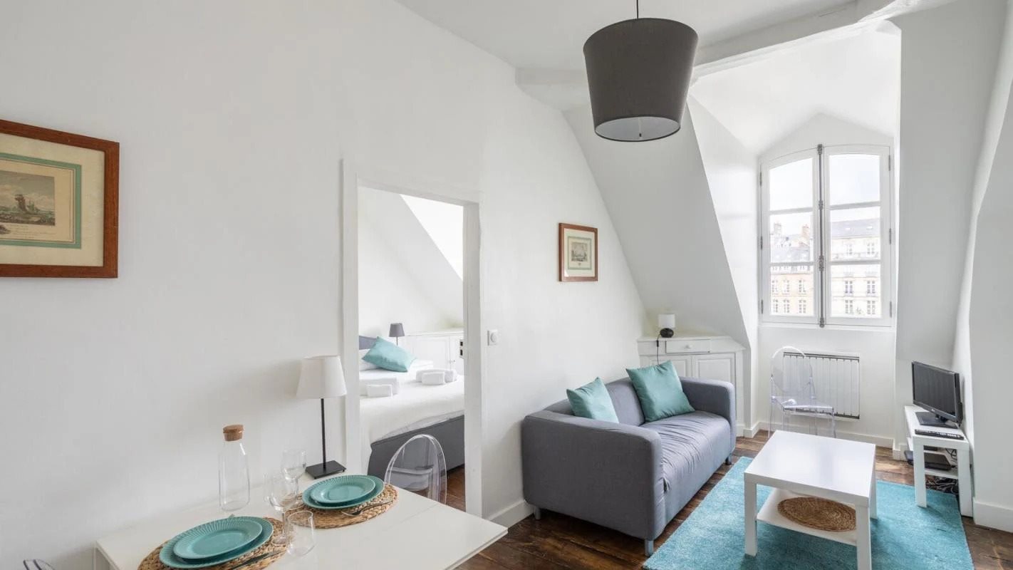 A Louer Appartement meublé T2 - Rennes Hyper Centre. L'agence Orpi Rennes Aristide Briand vous propose à la location cet appartement T2 meublé de 31.22 m² carrez situé en hyper centre de Rennes, Il se compose d'une pièce à vivre lumineuse avec kitchenette, d'une chambre et d'une salle d'eau avec W.C., A visiter au plus vite ! Disponible le 24 décembre Loyer : 828 € Charges : 12 € (parties communes et taxe d'ordures ménagères) Agence Orpi Rennes Aristide Briand