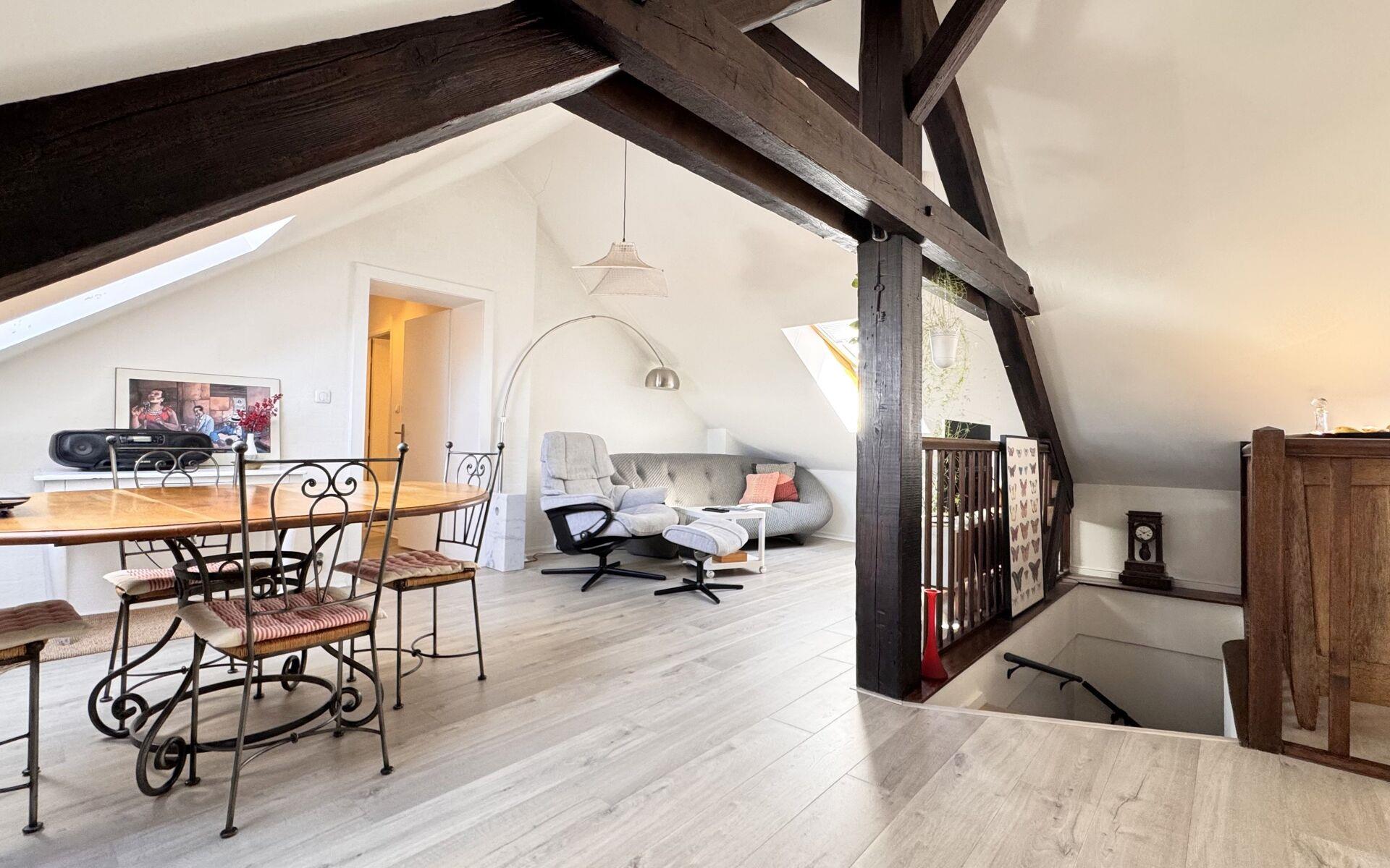 Metz Hyper Centre - Magnifique duplex alliant authenticité et confort moderne. Visite virtuelle disponible sur notre site Orpi Accueil 57 Situé au 3ème et dernier étage d'un bel immeuble, il se compose d'une entrée avec rangements, d'une cuisine équipée et aménagée ouverte sur la pièce de vie lumineuse avec vue splendide sur la cathédrale, de deux chambres, d'un dressing et d'une salle de bains. Double vitrage Ballon électrique 100l. Charme indéniable avec poutres apparentes Appartement en excellent état, aucun travaux à prévoir Luminosité et cachet garantis grâce à son emplacement privilégié Appartement de 39,80m² carrez et 74,79m² au sol Une simulation Dpe pour 2026 a été réalisée permettant au bien d'être classé en D sans réaliser de travaux. Bien rare pour les amoureux du centre historique avec un cadre de vie unique et calme, à proximité immédiate des commerces, restaurants et transports. Référence agence : 3165