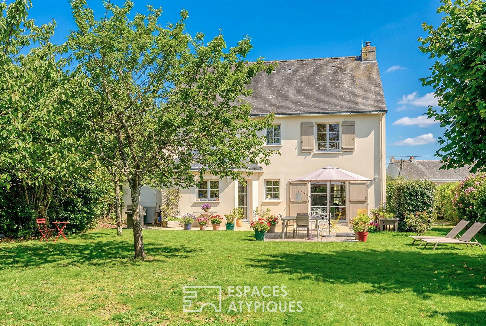 À Missillac, découvrez une maison familiale construite en 2008, au style architectural « Île-de-France », unique sur le secteur. À moins d'1km du célèbre Château et Golf de la Brestesche, cette maison conçue par des architectes des Monuments Historiques offre une qualité de construction remarquable et des volumes généreux en totalisant environ 170 m² habitables. La distribution intérieure se fait sur deux niveaux, avec une double orientation Est-Ouest qui assure une belle luminosité tout au long de la journée. Au rez-de-chaussée, l'entrée s'ouvre sur un séjour et une salle à manger d'environ 40 m² créant une pièce de vie conviviale, prolongée par une cuisine d'environ 17 m² agrémentée d'une verrière et entièrement réalisée sur mesure par un artisan menuisier. Sur ce même niveau, une suite parentale confortable, repensée pour optimiser l'espace et l'accès à la salle d'eau, permet une vie de plain-pied. À l'étage, quatre grandes chambres d'environ 14m² chacune et une salle de bain forment un espace nuit idéal pour une famille avec plusieurs enfants ou pour ceux qui souhaitent disposer d'un bureau et d'une salle de jeux. Édifiée sur une parcelle d'environ 1 200 m², la propriété bénéficie d'un jardin clos de murs et de haies, préservant totalement l'intimité. L'avant de la maison permet le stationnement de plusieurs véhicules et l'arrière, orienté vers le soleil du soir, accueille une terrasse agrandie par une extension bois. Le terrain, plat et piscinable, constitue un véritable atout pour les projets extérieurs et pourrait offrir des possibilités d'aménagements supplémentaires, sous réserve de validation auprès du PLU. Le chauffage est assuré par un système électrique performant, programmables selon les besoins, complété par un insert bois qui chauffe efficacement le rez-de-chaussée. L'isolation est de qualité, permettant de maintenir des charges maîtrisées toute l'année. Un atelier attenant, initialement prévu comme garage, bénéficie d'une arrivée d'eau et de radiateurs pour pouvoir accueillir une activité professionnelle, un espace de stockage ou un aménagement loisirs. Le grenier, propre et isolé, offre quant à lui un volume supplémentaire utilisable pour du rangement ou des évolutions futures selon les envies de chacun. Située dans un environnement résidentiel calme tout en restant proche des services du centre de Missillac, cette maison présente un cadre de vie recherché et une accessibilité appréciée vers les grands axes reliant Nantes, Vannes ou encore La Baule. Elle conviendra parfaitement à une famille souhaitant allier confort contemporain, caractère architectural et espace extérieur agréable. Les informations sur les risques auxquels ce bien est exposé sont disponibles sur le site Géorisques Classe énergie C / Classe climat A Montant moyen estimé des dépenses annuelles d'énergie pour un usage standard établi à partir des prix indexés sur les années 2021, 2022, 2023 (abonnements compris) entre 1320 et 1830 par an. Contact: Fanny Maillard RSAC : 2024Ac00030 Saint-Nazaire Email: