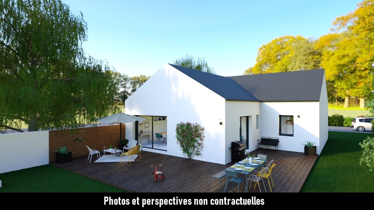 Avec sa façade réduite, cette maison neuve à construire s'adaptera facilement à tous les terrains ! Construisez votre maison 3 chambres en L, avec une pièce de vie lumineuse de 40m² donnant sur une cuisine ouverte, un garage de 18m² et une grande salle de bain de 8m². Inclus : grande baie vitrée, volets roulants électriques, chauffage économique avec plancher chauffant, meuble vasque avec mitigeurs Hansgrohe, faïences jusqu'à 30x90 et carrelage jusqu'à 60x60. Personnalisez votre modèle en fonction de vos envies et de votre budget. Notre équipe vous guide dans vos choix et vous propose rapidement un devis gratuit, sans engagement. Faire construire avec Kmo : c'est facile !