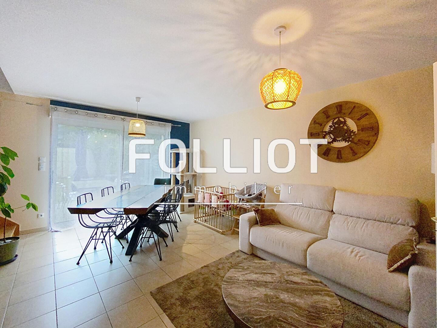 Maison mitoyenne comprenant au rez-de-chaussée, une entrée, une cuisine simple, un séjour-salon et un Wc. A l'étage, un palier avec placard, trois chambres avec placards, une salle de bains, un WC. Garage et jardin. Disponible le ! "Les informations sur les risques auxquels ce bien est exposé sont disponibles sur le site Géorisques : "