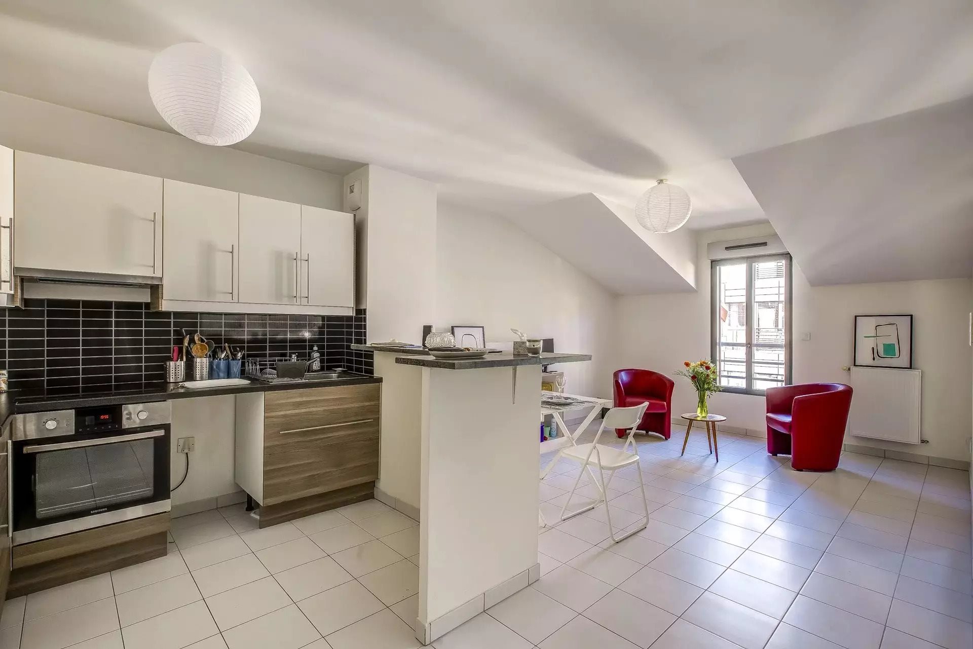 Rue Pierre Pietri, dans résidence de 2012 aux normes Pmr, au cinquième étage de l'immeuble avec ascenseur, appartement deux pièces d'environ 50m2 comprenant une entrée avec grands placards, une cuisine ouverte, un séjour, une chambre, un Wc indépendant, ainsi qu'une salle de bains. Exposition Est, vue sur cour intérieure à ciel ouvert, calme.