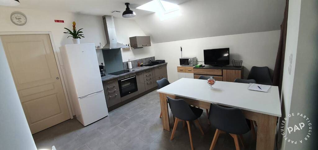 T2 mansarde de 2021 tout équipé (vaisselle, casseroles, machine à laver, planche à repasser, étendage, fer à repasser, four, four micro-ondes, frigo, cafetière, grille-pain, bouilloire…) Libre de suite 1 grand lit 1 lit superposé 1 canapé lit Télévision Les charges comprennent le wifi par fibre, l’assurance et les communs et en ce qui concerne l’électricité et l’eau, elles sont à payer tous les mois sur facture après relève de la consommation réelle. Bail court possible Références exigées Caution par chèque demandée et non encaissée, chèque rendu au départ du locataire