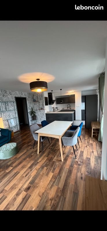 À louer T3 meublé de 68 m², situé au 3ᵉ et dernier étage, exposé Sud / Sud-Est, très lumineux. Appartement comprenant : un séjour agréable, deux chambres, une cuisine équipée, une salle de bain et une grande terrasse de 25 m². Copropriété calme, à 5 minutes à pied du centre-bourg (commerces, services, commodités). Logement entièrement meublé et équipé. Chauffage électrique. Box extérieur inclus Local vélos Local poubelles accessible Loyer : 900 €/mois charges comprises. Location meublée – dossier sérieux demandé. Disponible le 15 février 2026