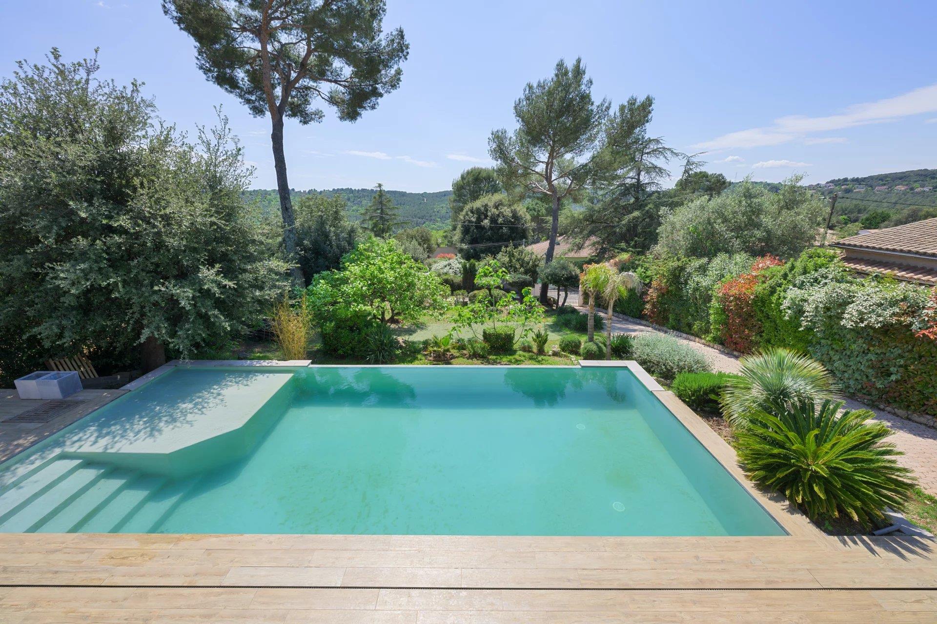 Biot - Bois Fleuri - Calme Et Vue Dégagée Exclusivité - Ne tardez pas à visiter cette charmante villa idéalement située dans le quartier prisé de Biot, le Bois Fleuri. À la limite de Valbonne, à proximité des écoles, du collège, du lycée, des commerces et de toutes les commodités, cette maison est idéale pour les familles. Dans un calme absolu, vous pourrez profiter d'un beau jardin fonctionnel, d'une vue dégagée et d'une grande piscine à débordement (5x11m) pour passer d'agréables moments entre amis. La maison se compose de : Au rez-de-chaussée : un espace de vie très lumineux avec salon et salle à manger, une cuisine indépendante, une chambre, une salle de bain et un Wc. À l'étage : une grande chambre parentale de plus de 25 m² donnant sur une terrasse spacieuse de plus de 30 m², facilement aménageable selon vos besoins, une seconde chambre, une salle de bain, une buanderie et un dressing. Au rez-de-jardin : une dépendance appréciable pour recevoir les amis. Rare Sur Le Marché, À Visiter Rapidement !