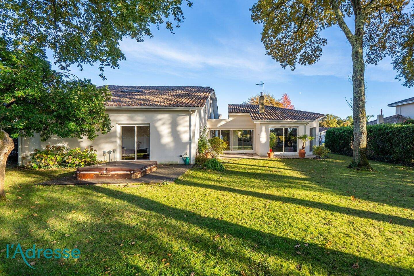 Gradignan - située au coeur d'un quartier résidentiel très calme, belle maison d'architecte ultra lumineuse d'une surface habitable d'environ 213 m² dans un magnifique jardin arboré et paysagé avec vue sur les vignes ! Elle comprend en rez-de-chaussée une grande pièce de vie avec hauteur sous plafond triple exposition, poêle à bois, cuisine ouverte entièrement équipée, une buanderie/chaufferie, une suite parentale avec salle de bains (douche et baignoire) et dressing aménagé, deux studios indépendants avec salle d'eau/WC et kitchenette (l'un pouvant être rattaché facilement à la maison pour une seconde chambre en rez-de-chaussée). A l'étage : grande mezzanine ouverte pouvant accueillir bureaux, dressing ou troisième chambre de l'étage envisageable, deux autres chambres dont une avec terrasse et dressing, salle d'eau, Wc. Chauffage au gaz au sol. Un grand garage double, un abri de jardin et un spa semi-enterré viennent compléter le bien. Environnement magnifique et privilégié, à découvrir rapidement ! Vous pouvez directement Johan Despujols ou l'agence . (3.22 % honoraires Ttc à la charge de l'acquéreur.)